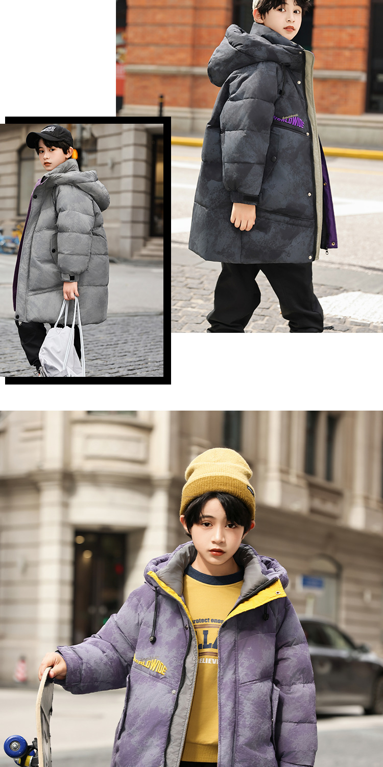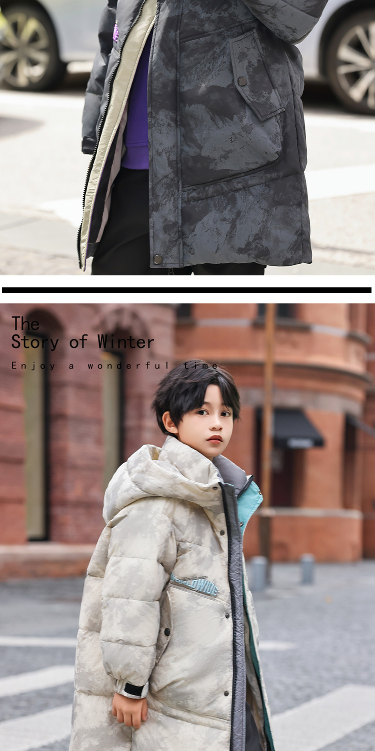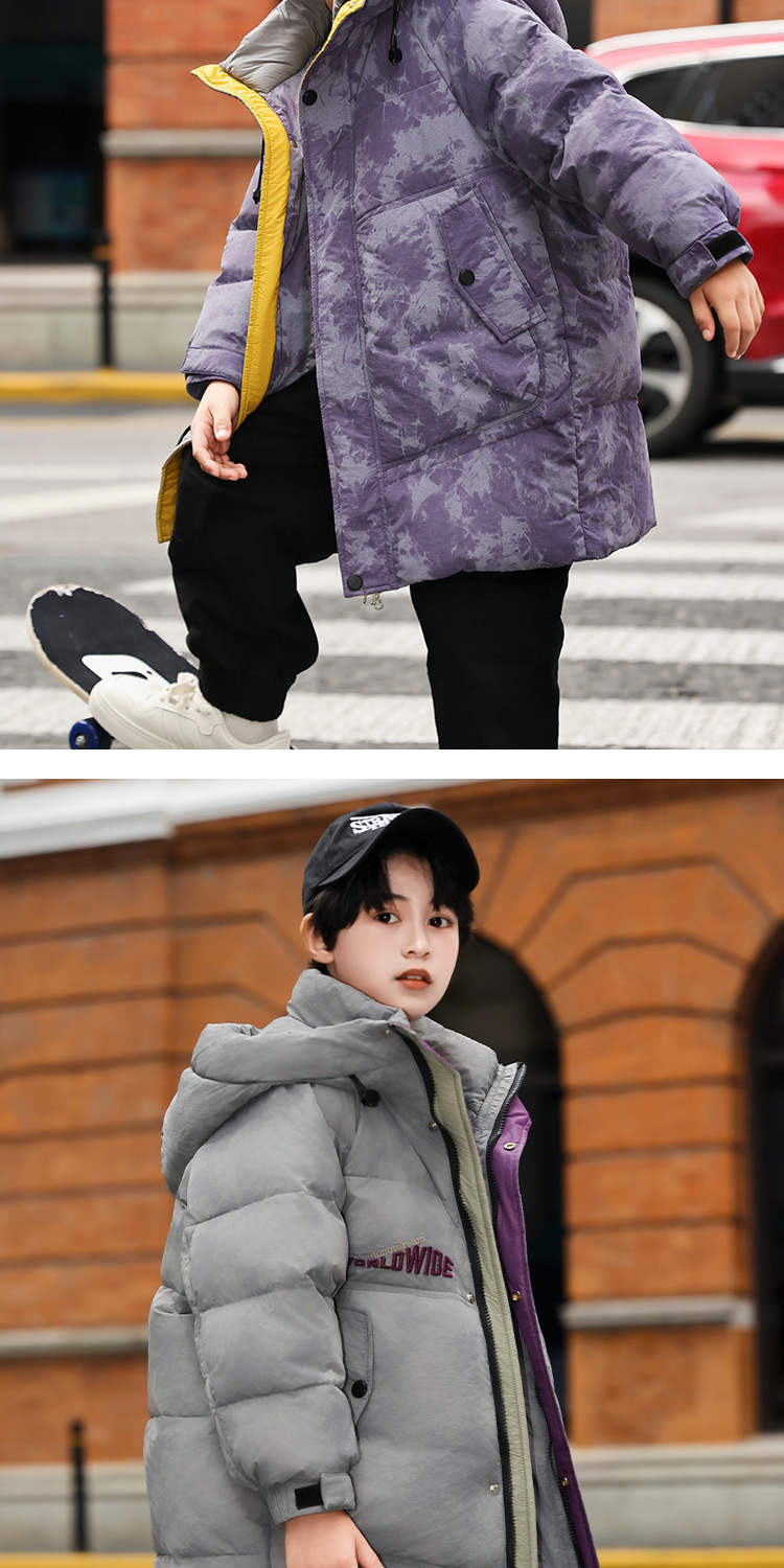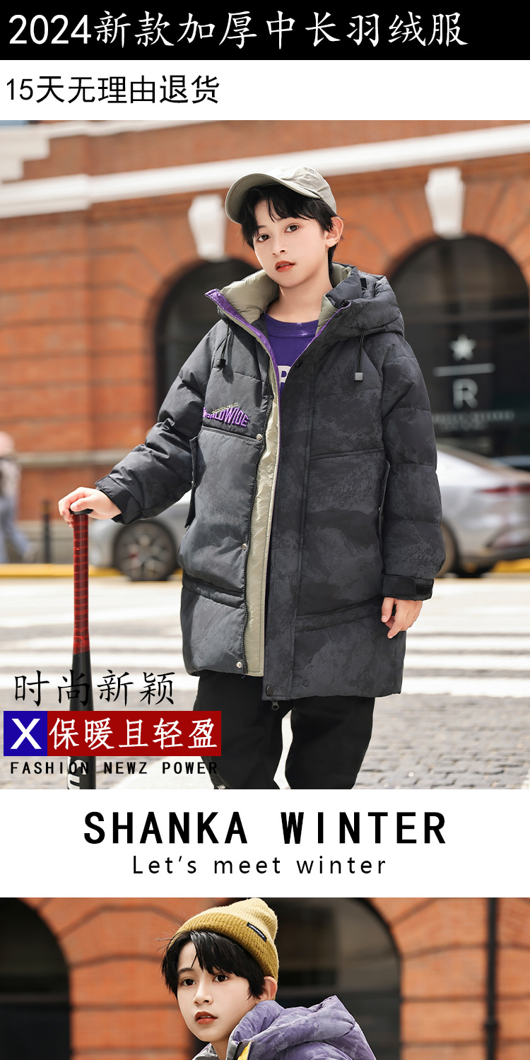 소년 겨울 다운 재킷 2024 새로운 스타일 어린이 겨울 두꺼운 따뜻한 후드 소년 탑 재킷