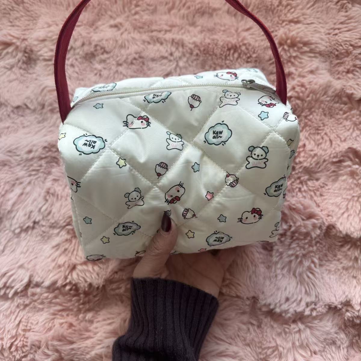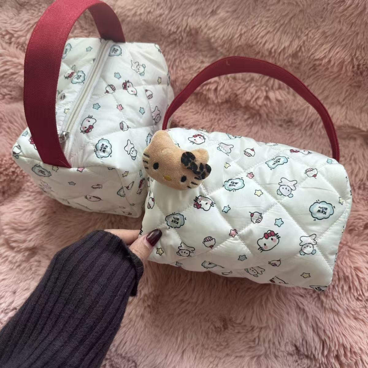 가을 겨울 신작 헬로 키티 대용량 휴대용 수납 가방 세면 용품 가방 펜던트가없는 여성을위한 슈퍼 귀여운 핸드백스토어 가기