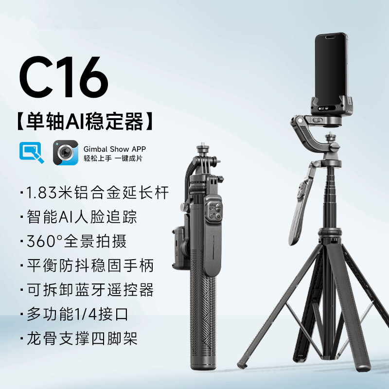 휴대폰 안정기 C16 스마트 AI 손떨림 방지 및 촬영 짐벌 셀카봉 휴대용 안정기 완전 자동 촬영 추적기