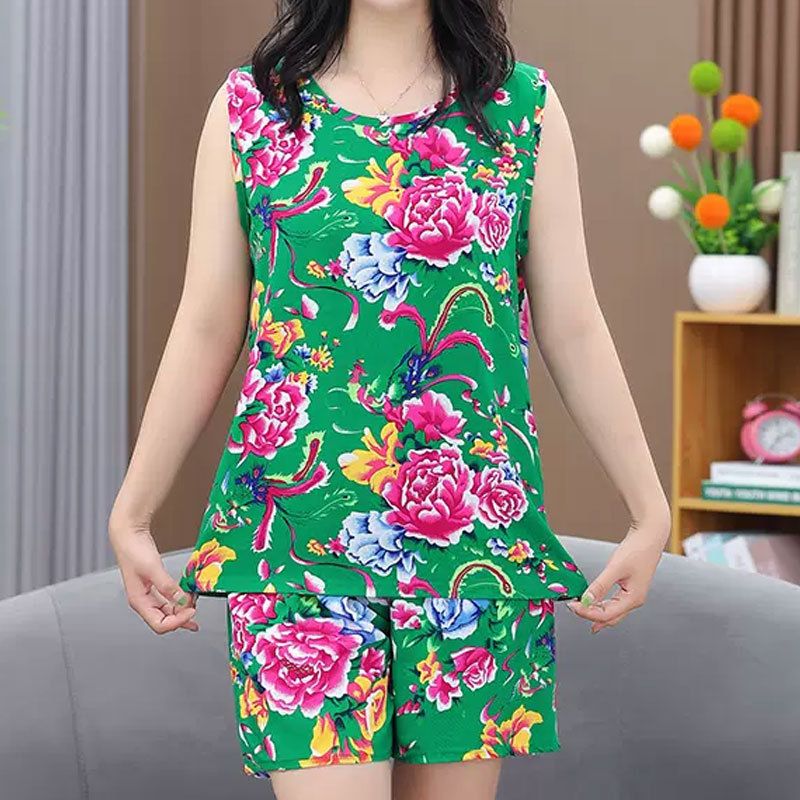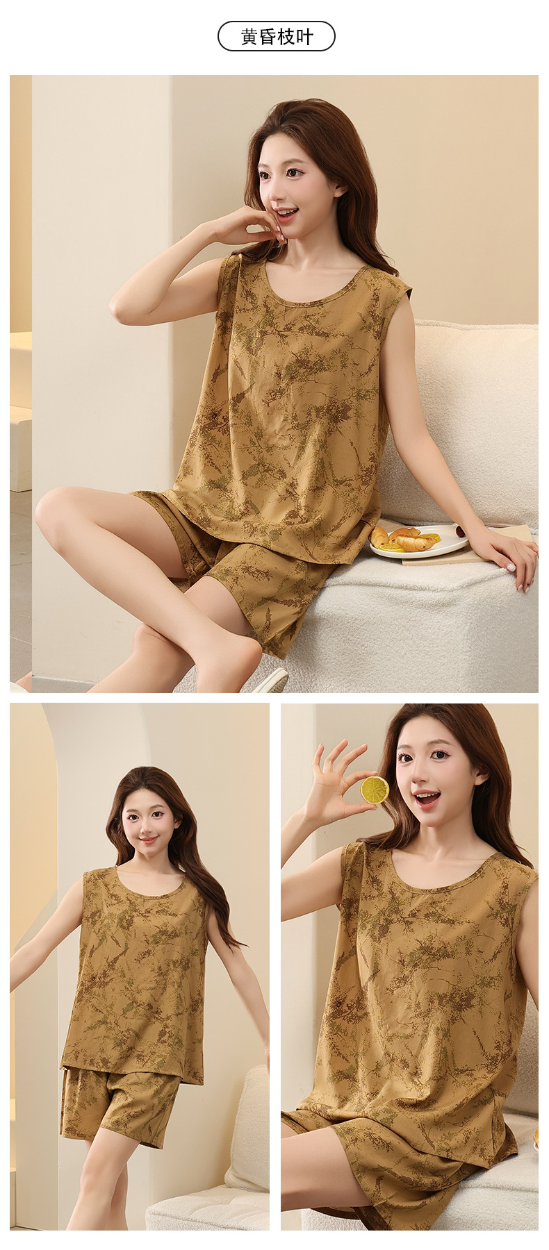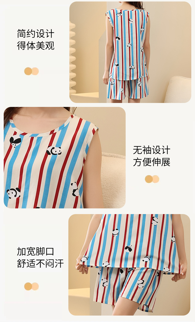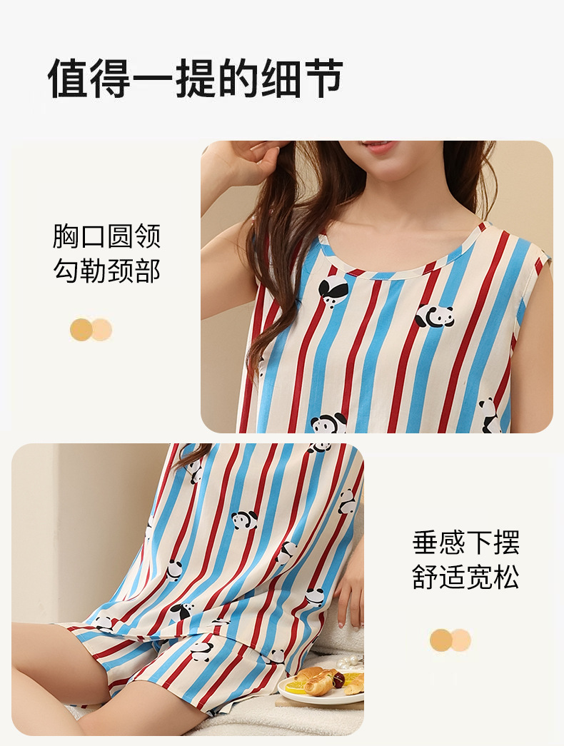 여성을위한 면 실크 잠옷 여름 얇은 민소매 조끼 반바지 투피스 양복 대형 느슨한 인공 면화 가정 의류