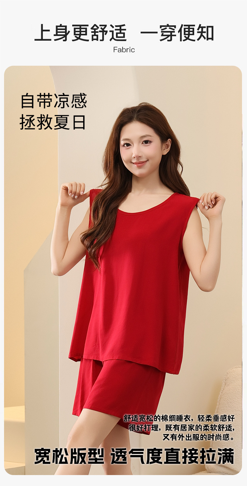 여성을위한 면 실크 잠옷 여름 얇은 민소매 조끼 반바지 투피스 양복 대형 느슨한 인공 면화 가정 의류스토어 가기