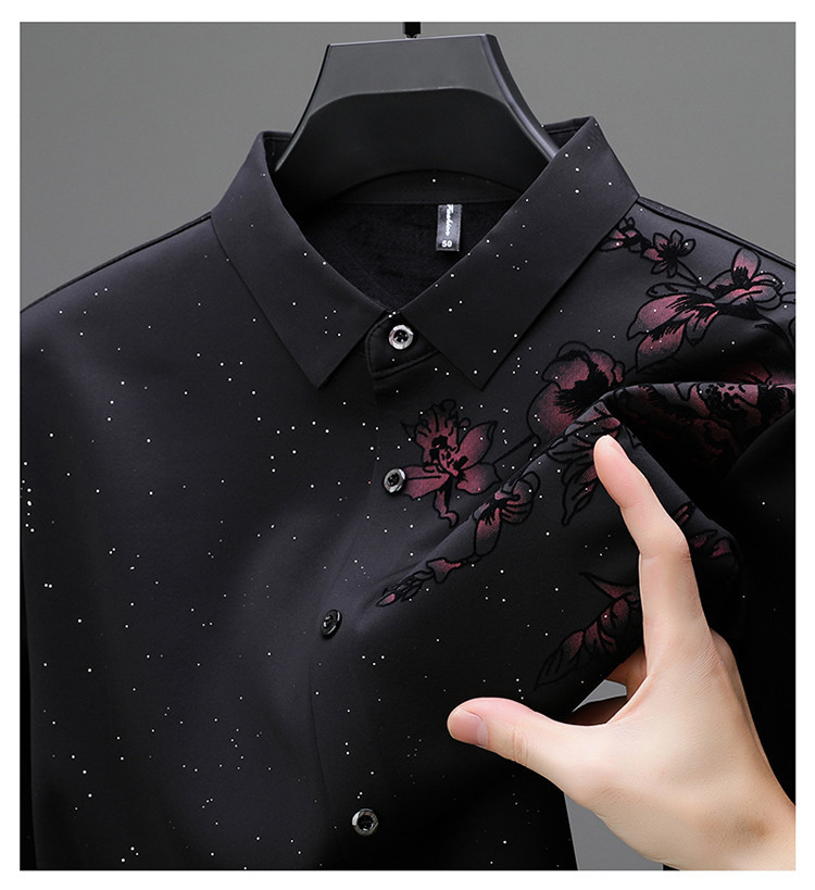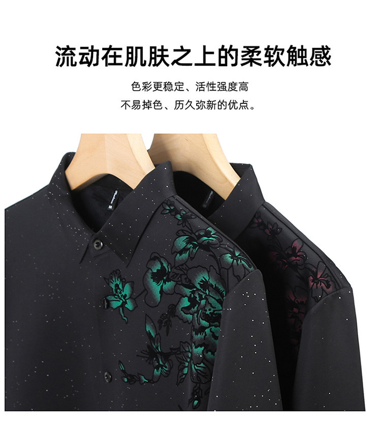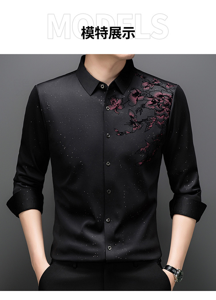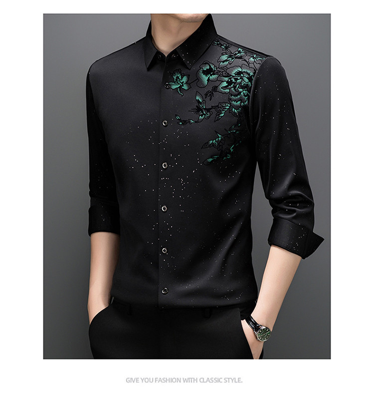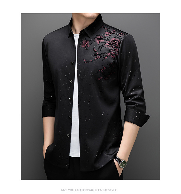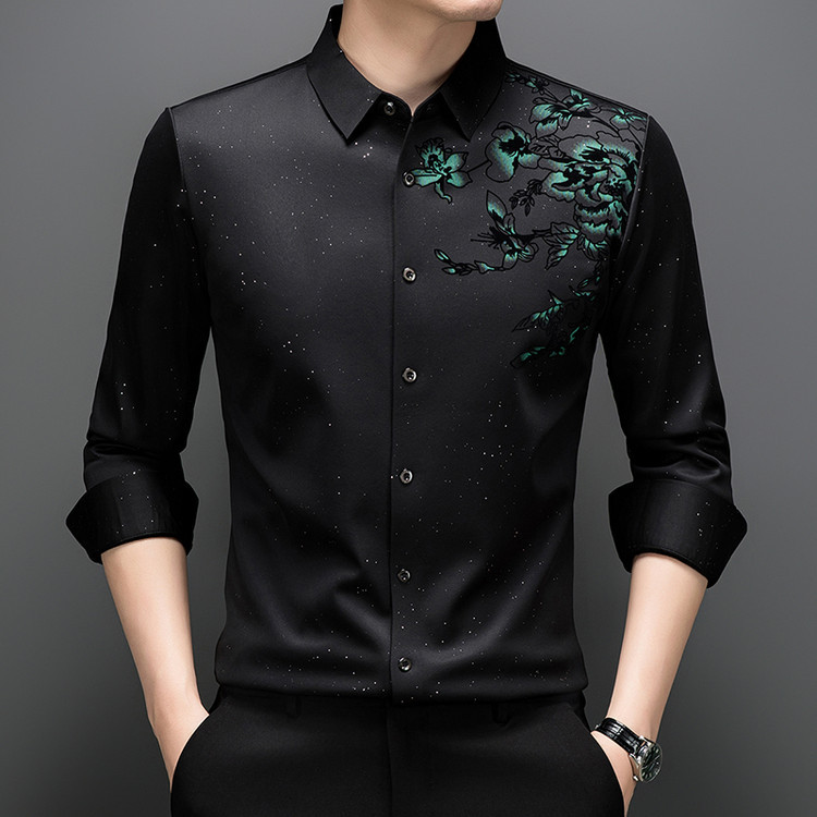 봄, 가을 남성용 인기 긴팔 셔츠, 비즈니스 캐주얼 셔츠, 남성용 고급 아이스 실크 심리스 프린트 인치 셔츠스토어 가기