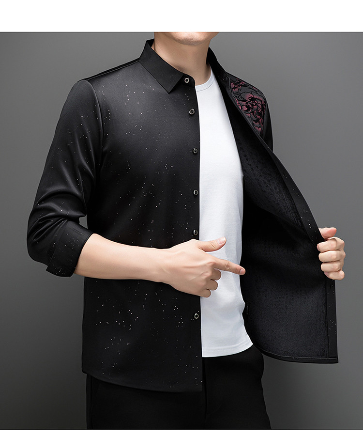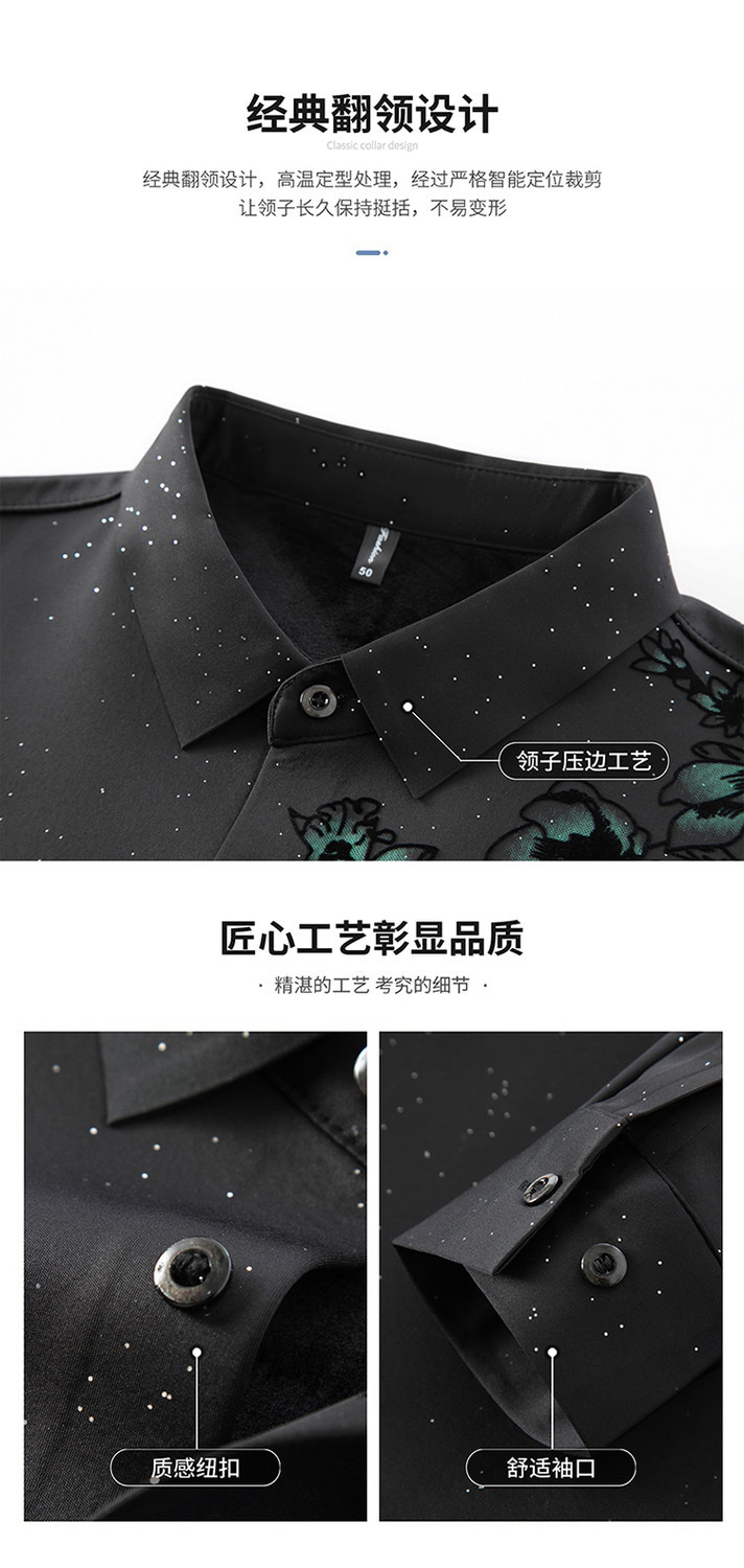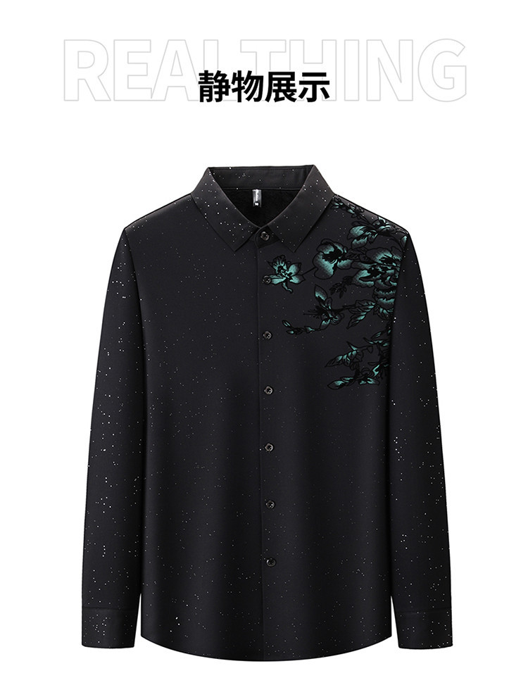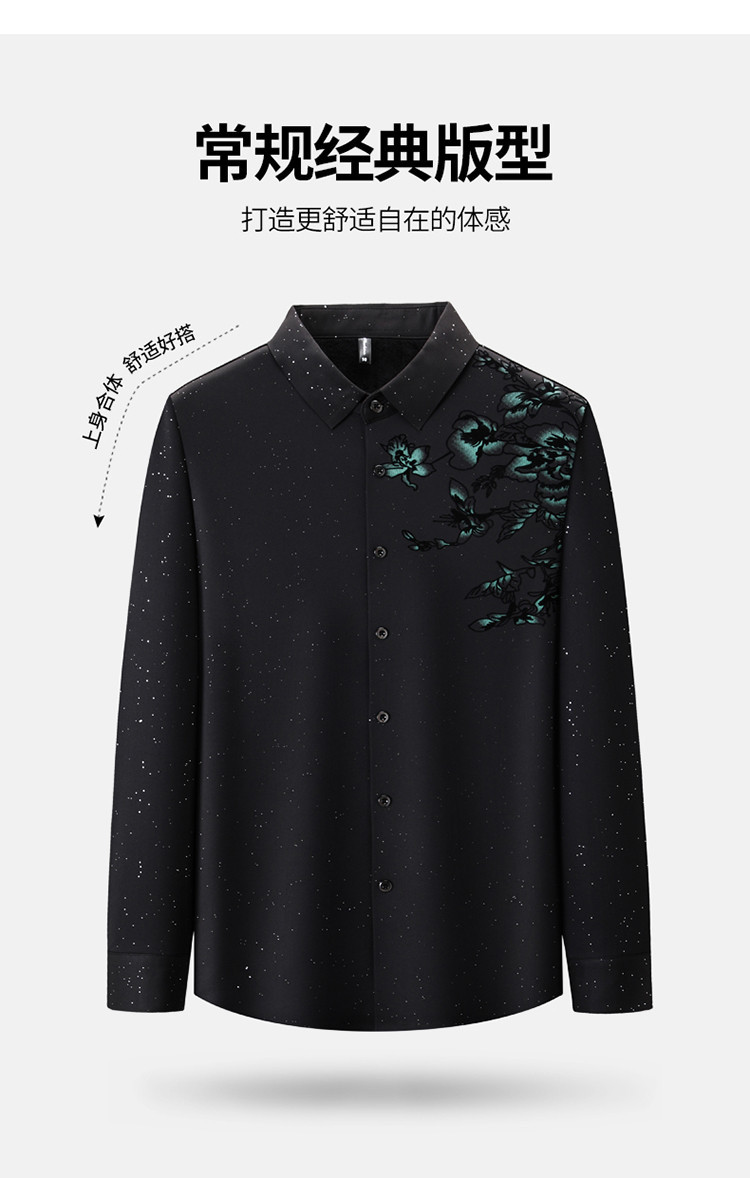 봄, 가을 남성용 인기 긴팔 셔츠, 비즈니스 캐주얼 셔츠, 남성용 고급 아이스 실크 심리스 프린트 인치 셔츠스토어 가기