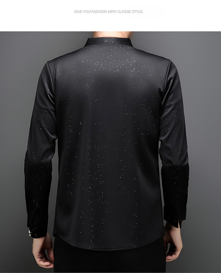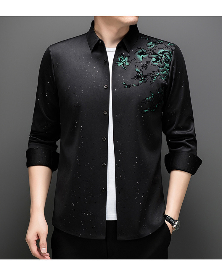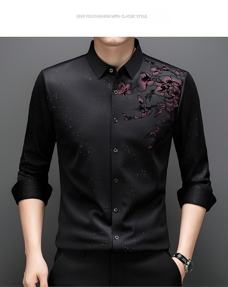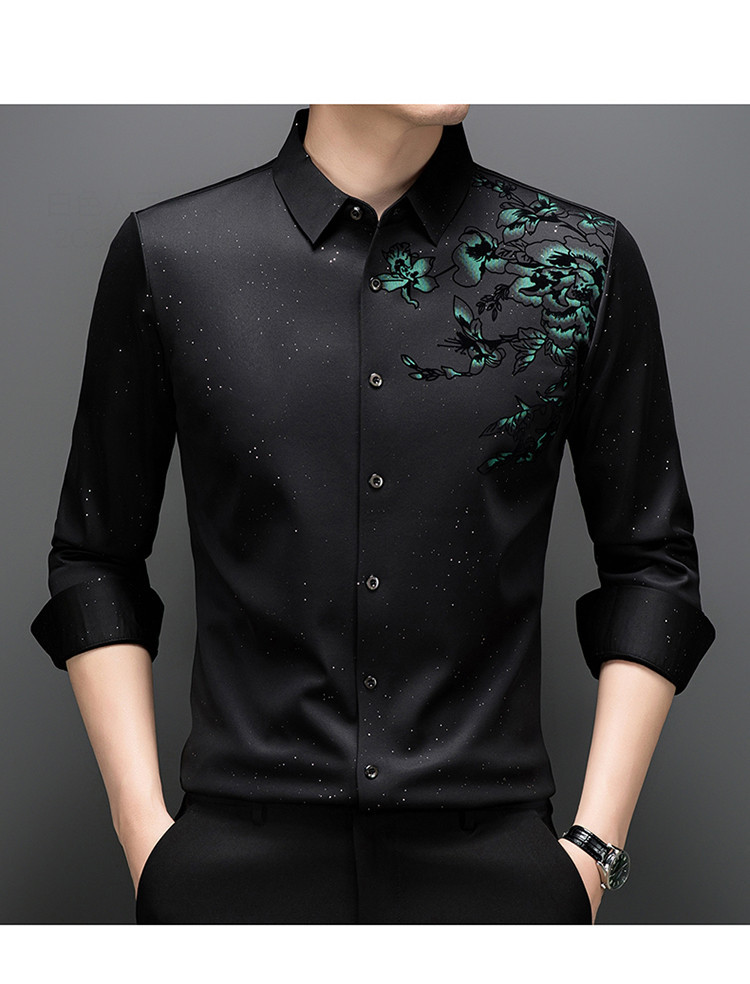봄, 가을 남성용 인기 긴팔 셔츠, 비즈니스 캐주얼 셔츠, 남성용 고급 아이스 실크 심리스 프린트 인치 셔츠