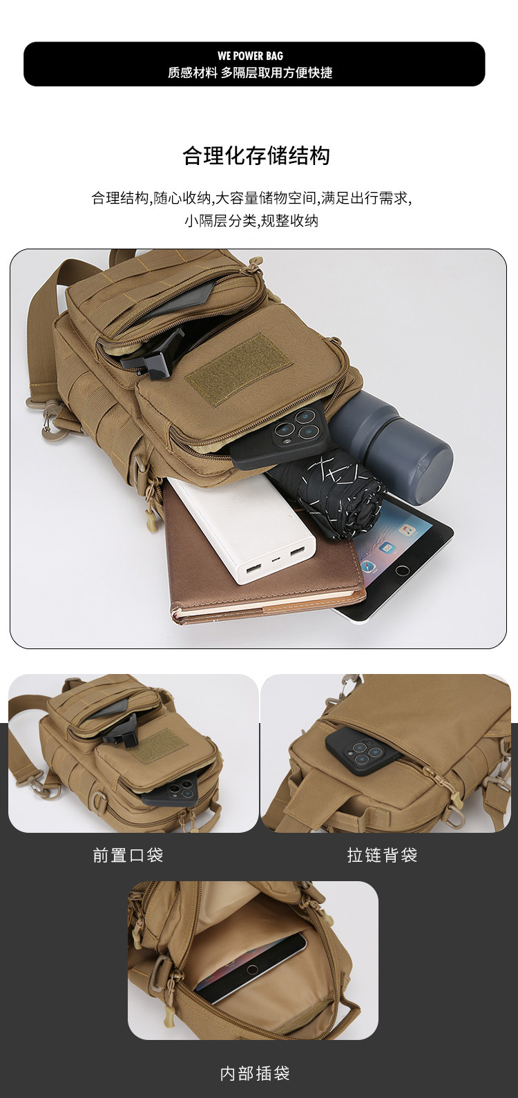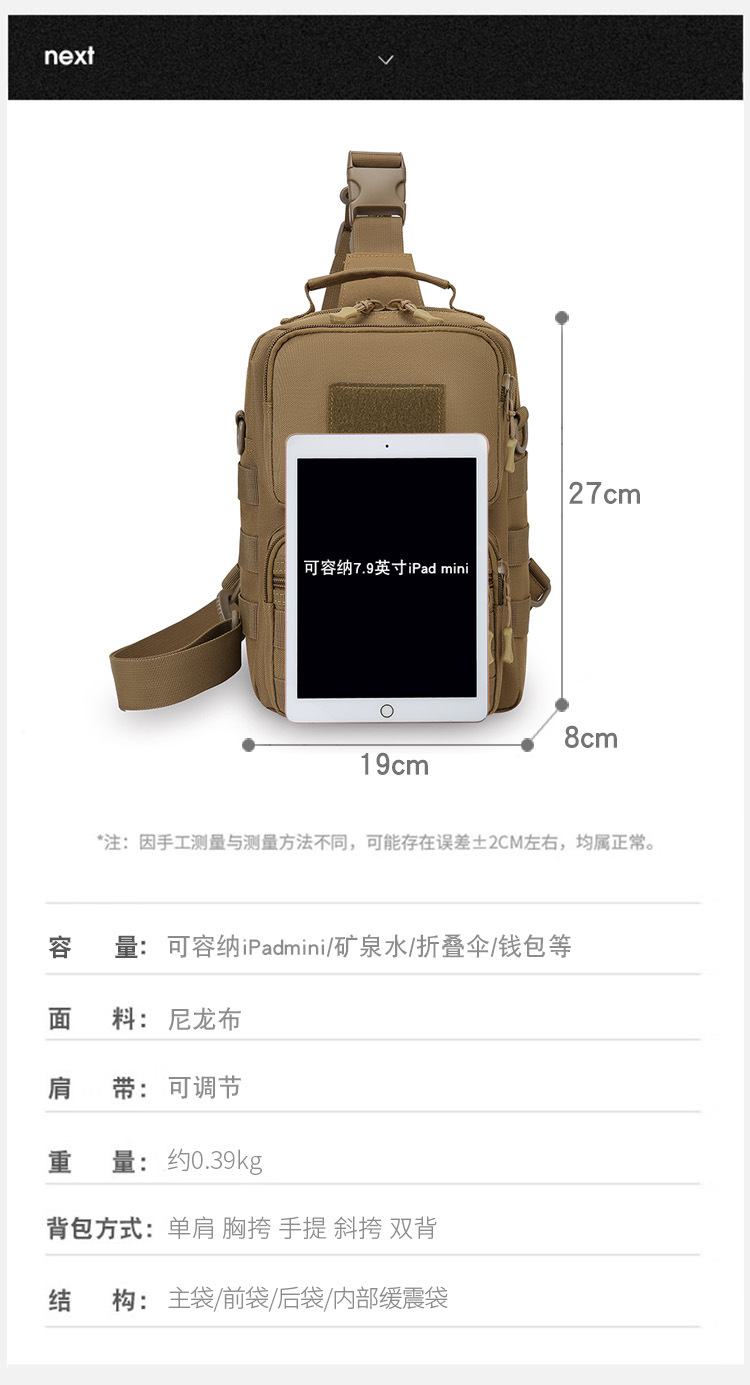 Zhongyi 핫 세일 야외 스포츠 EDC 터프 Guen Chest 백 위장 크로스 바디 백 등산 옥스포드 천 도구 인증서 백스토어 가기