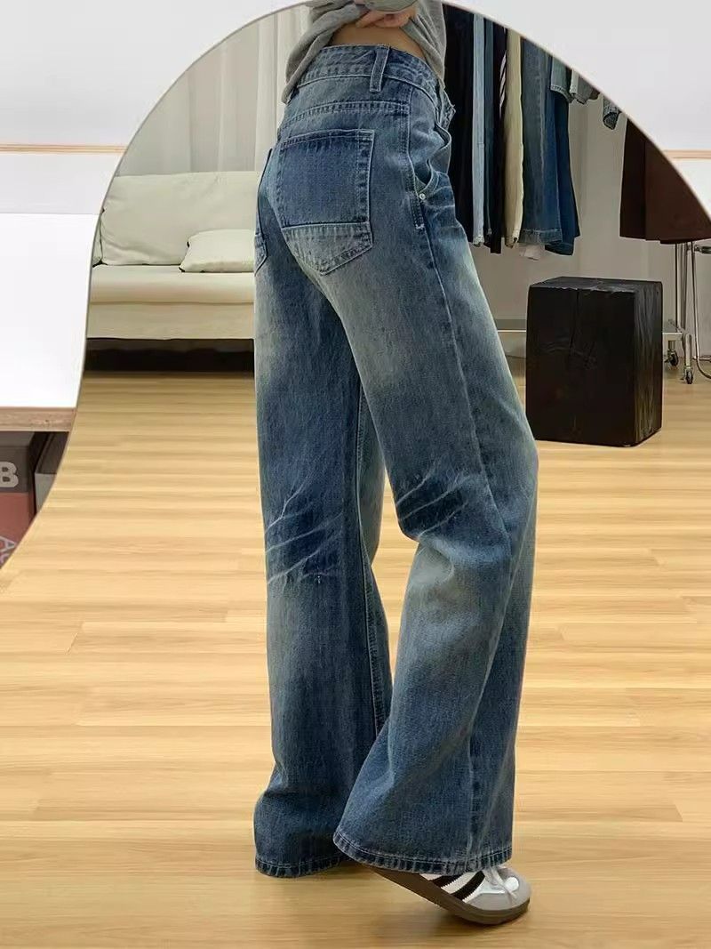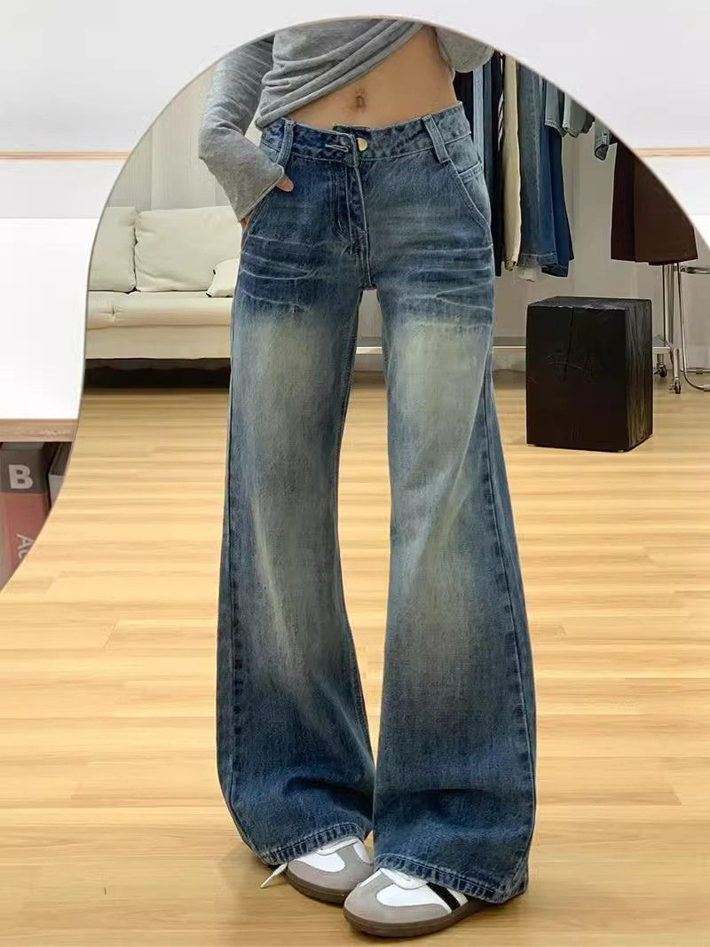 여성용 스몰 레트로 미드 웨이스트 부츠컷 청바지, 스트레이트 핏, 슬림하고 드레이프한 루즈핏, 다리에 꼭 맞지 않는 와이드 팬츠