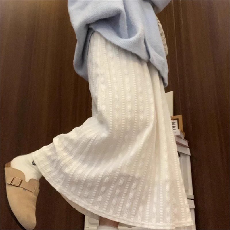 화이트 젠틀 스타일 스커트 여성 하이 웨이스트 미디 스커트 여름 a 라인 스커트스토어 가기