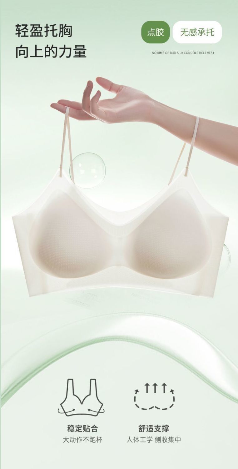 여름용 아이스 실크 무봉제 여성 속옷, 아름다운 등라인, 작은 가슴을 모아주는 초박형 통기성 조끼 브라, 아이스 느낌의 노와이어 브라스토어 가기