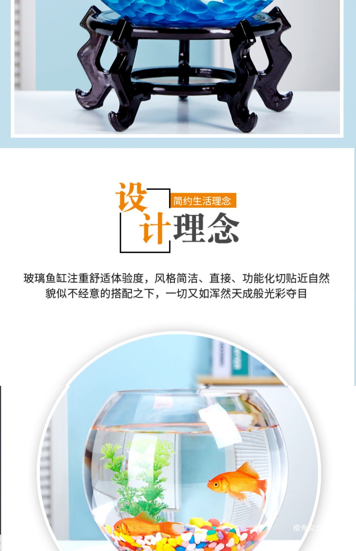 책상 유리 수조 금붕어 수조 수족관 거실 작은 데스크탑 거북이 수조 투명 원형 가정용 Shihua스토어 가기
