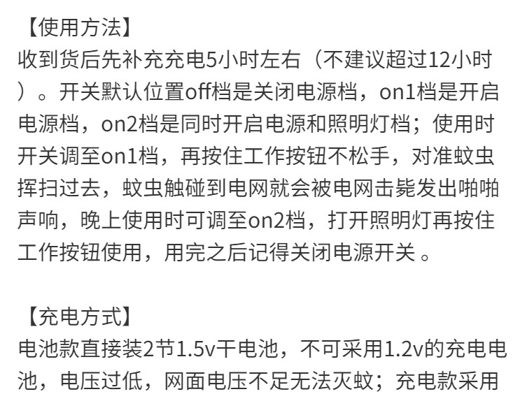 • 배터리 모델 - 미니 전기 모기채 - 배터리 자체 장착