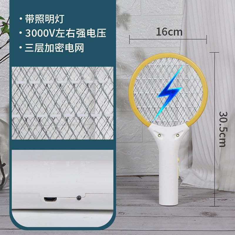 • 노란색 미니 전기 모기채-USB 충전