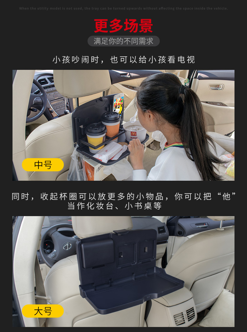 새로운 자동차 식탁 식탁 자동차 식탁 어린이 의자 다시 식당 판 뒷좌석 접이식 다기능 보관 컵 홀더