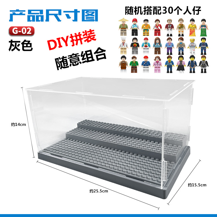 • G-02 회색 빌딩 블록 디스플레이 상자 + 미니피겨 30개
