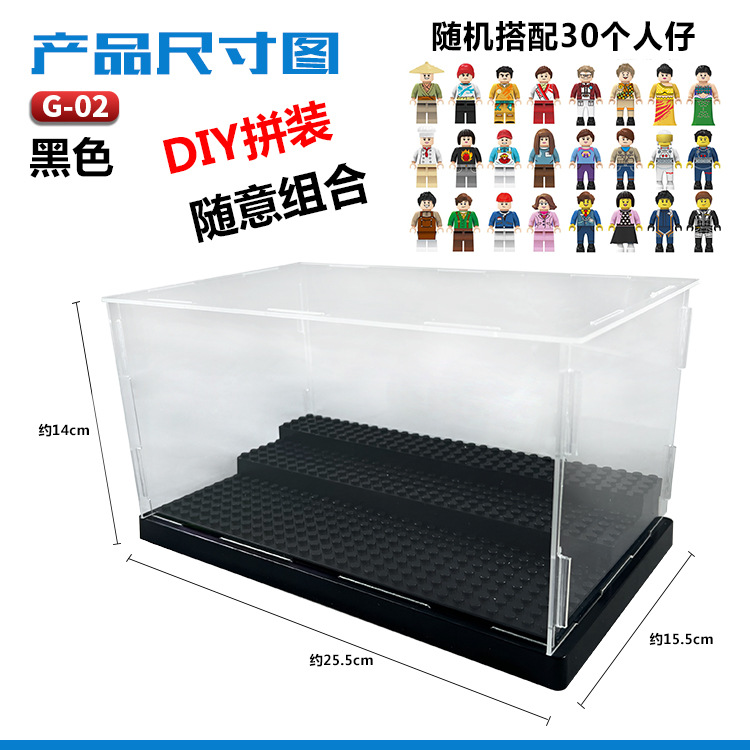 • G-02 검정색 빌딩 블록 디스플레이 상자 + 미니피겨 30개