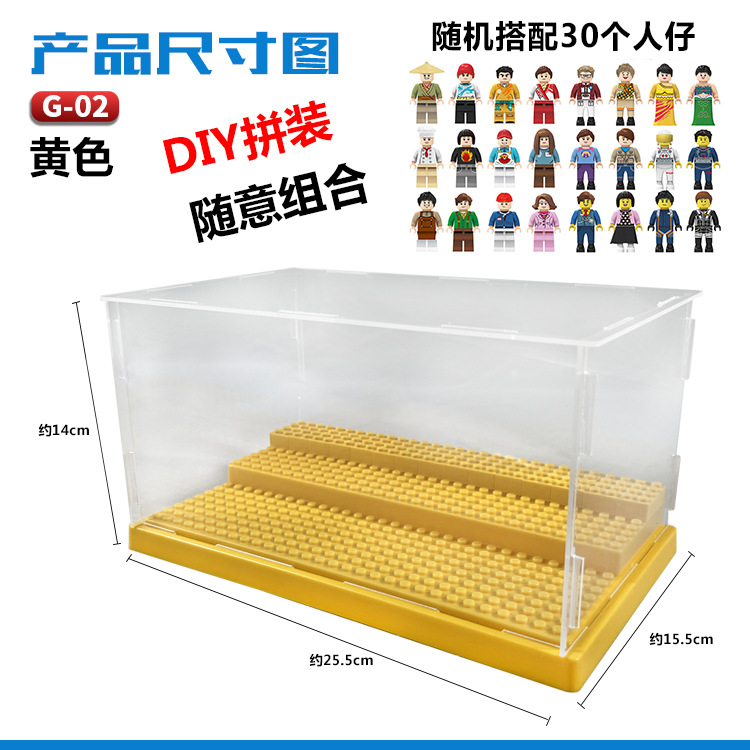• G-02 노란색 빌딩 블록 디스플레이 상자 + 미니피겨 30개