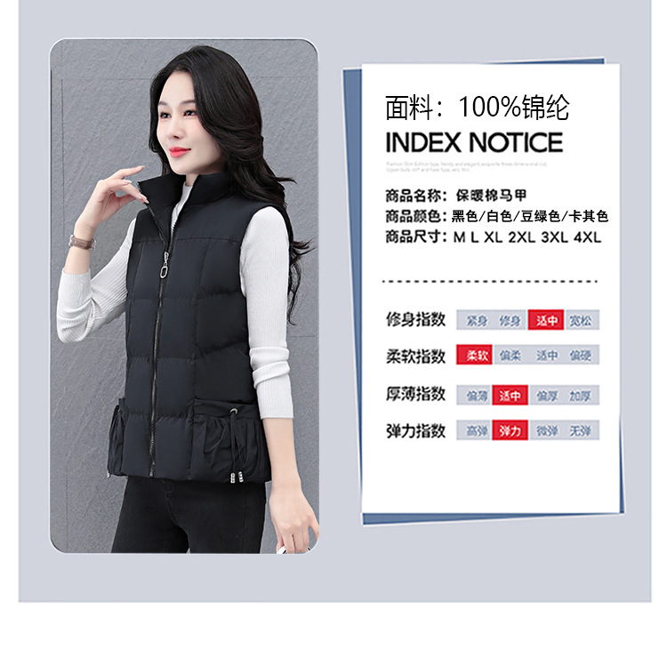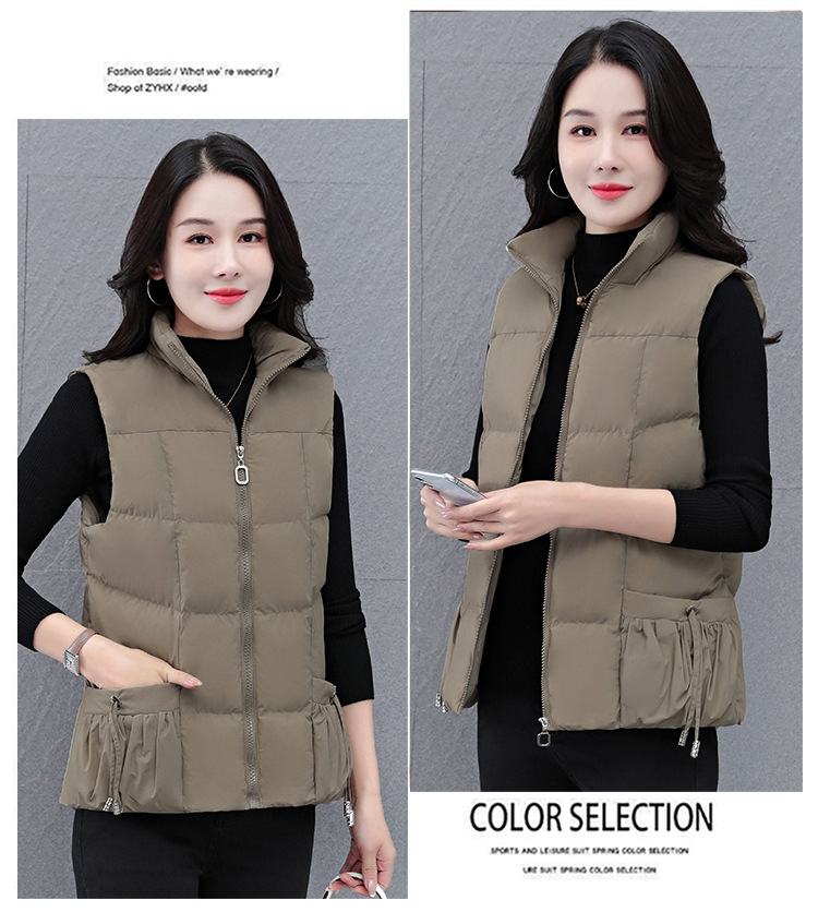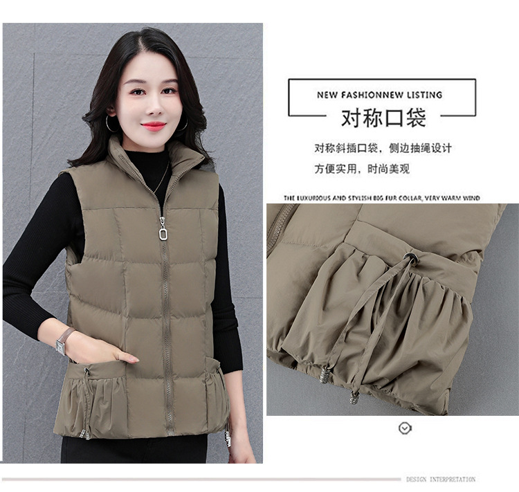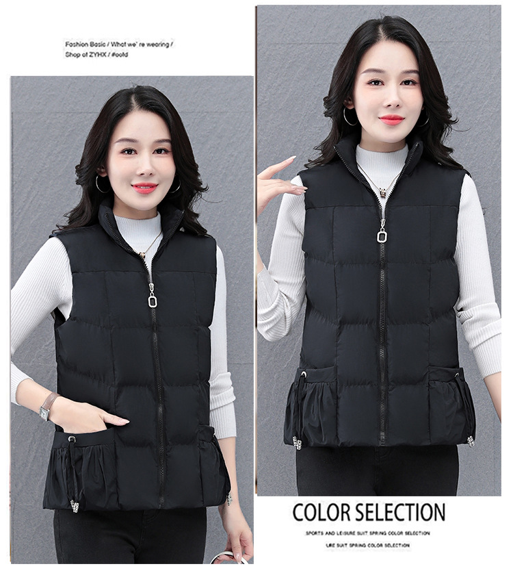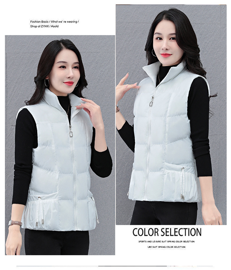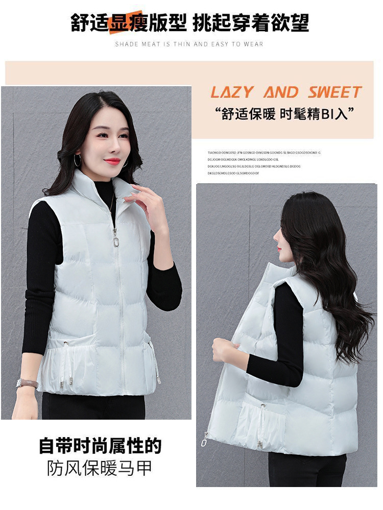 중년 어머니의 스탠드 칼라 다운 코튼 조끼 여성 가을, 겨울 캐주얼 스타일 연령 감소 민소매 조끼 조끼스토어 가기