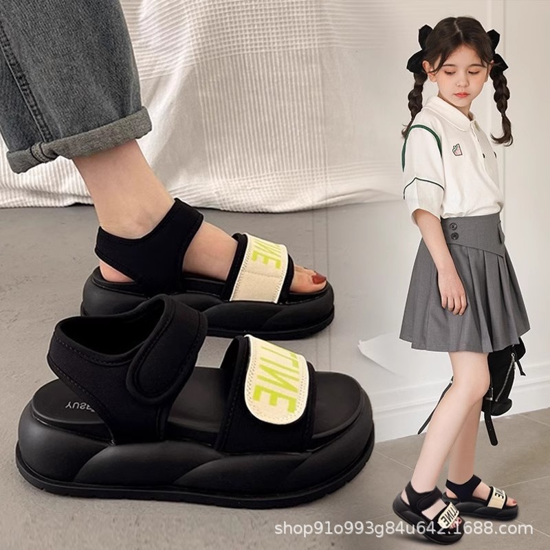 여자 샌들 여름 새로운 스타일 미끄럼 방지 공주 신발 2025 패션 중형 및 대형 어린이 부드러운 바닥 소녀 해변 신발스토어 가기