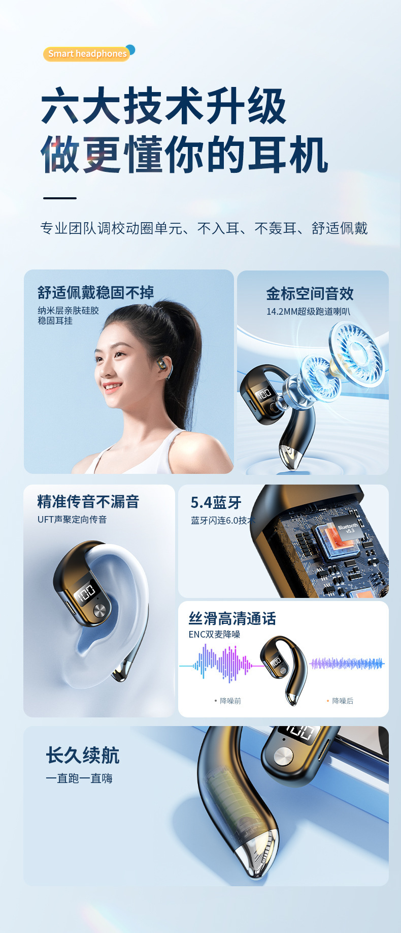 2025 새로운 K26 오픈 교수형 귀 무선 블루투스 OWS 헤드셋 싱글 이어 비즈니스 스포츠 헤드셋 긴 내구성