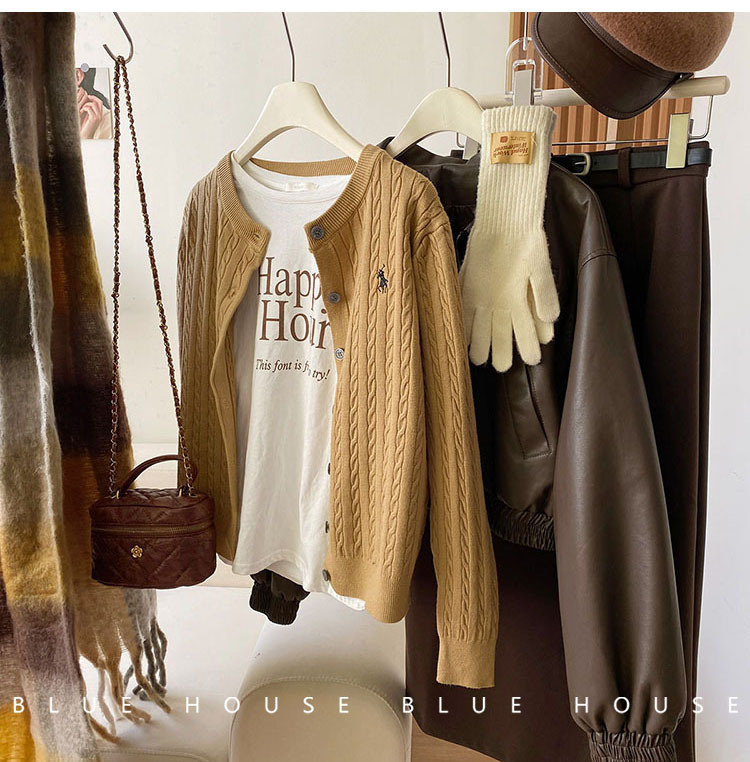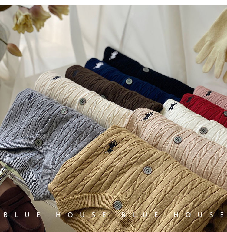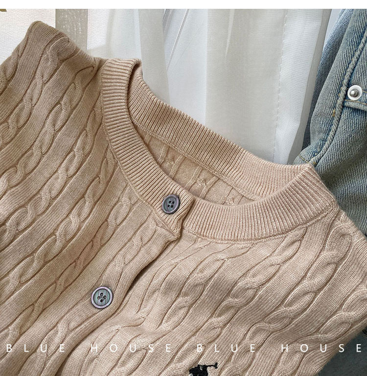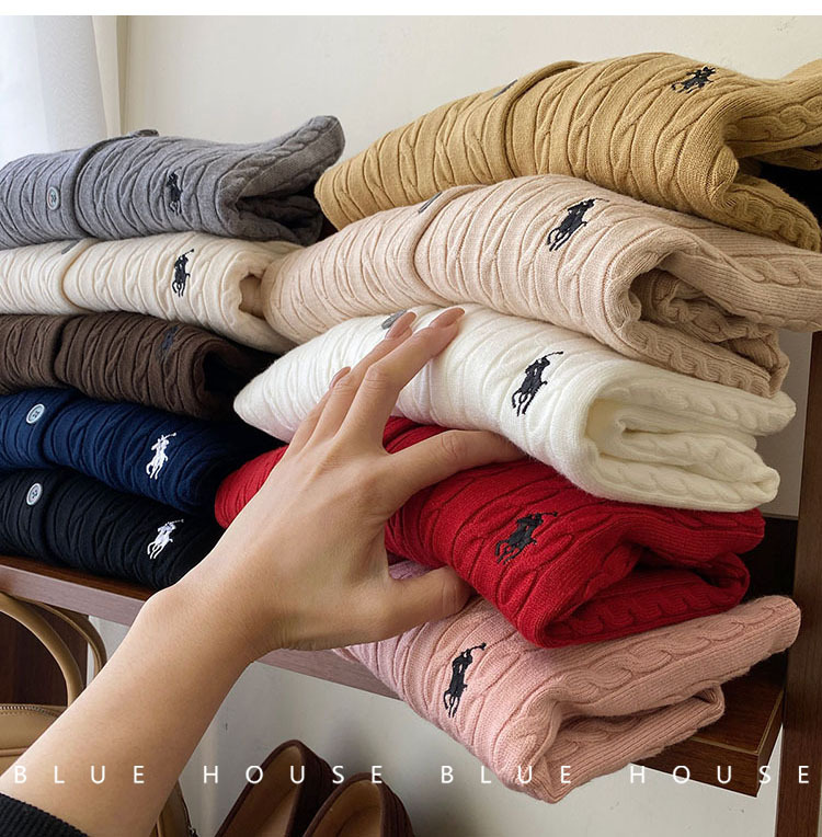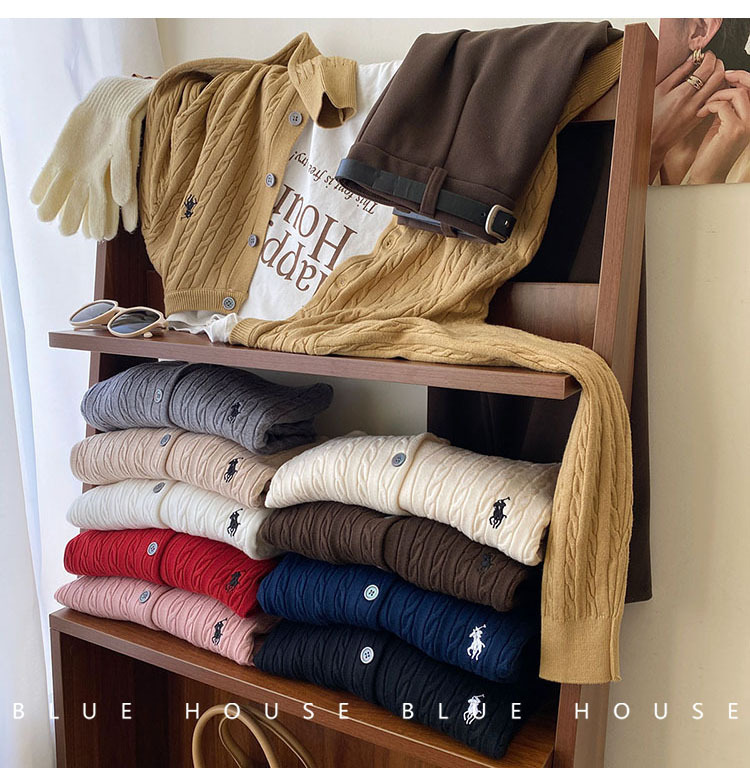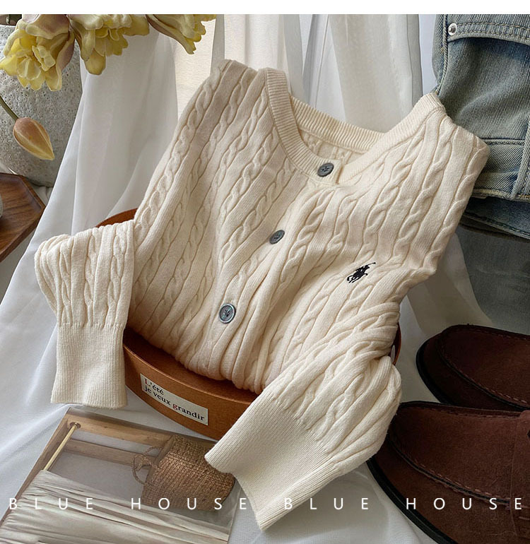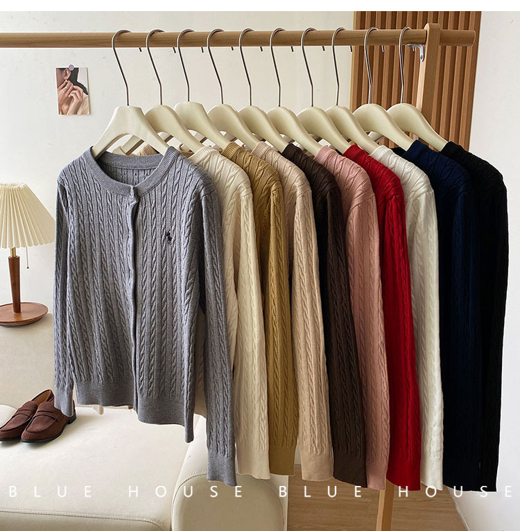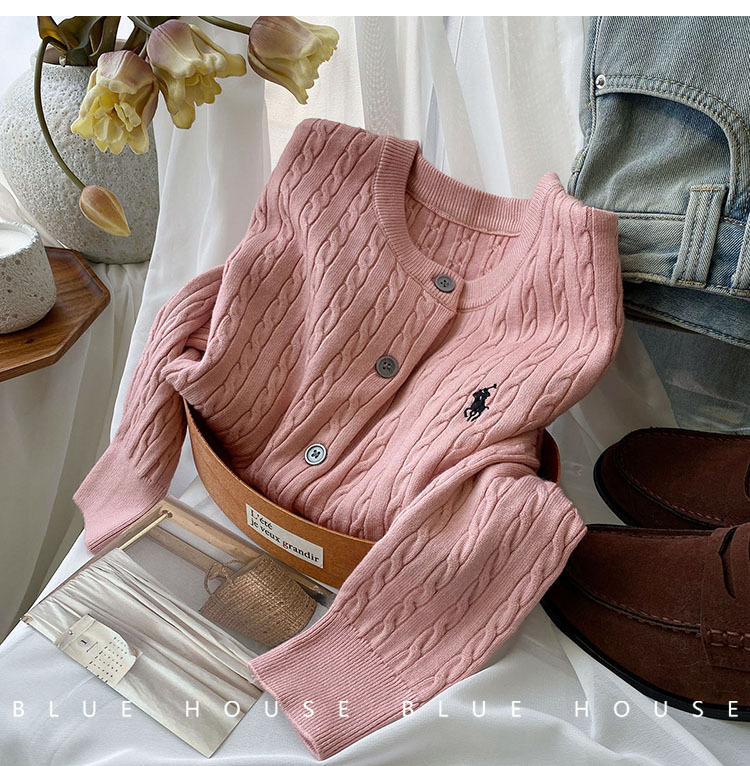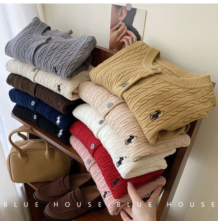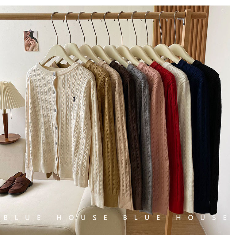 여성을위한 작은 말 자수 트위스트 니트 카디건 가을, 겨울 이른 봄 복고풍 라운드 넥 레드 화이트 스웨터 코트 탑 여성스토어 가기