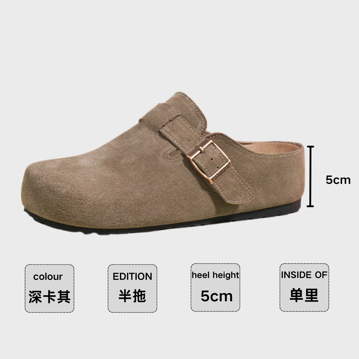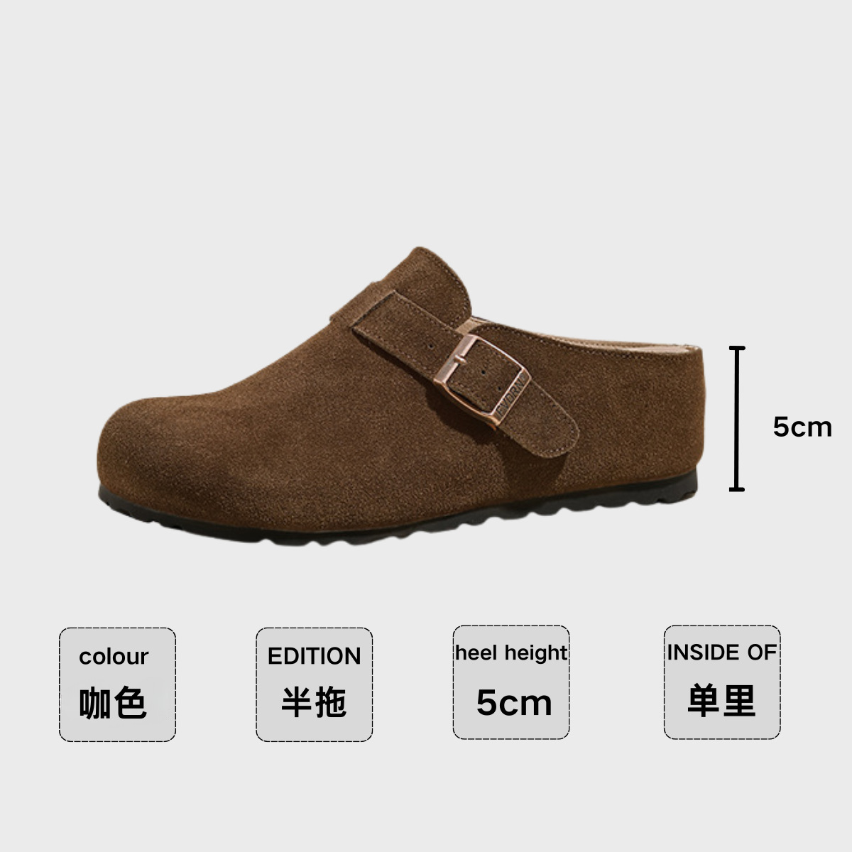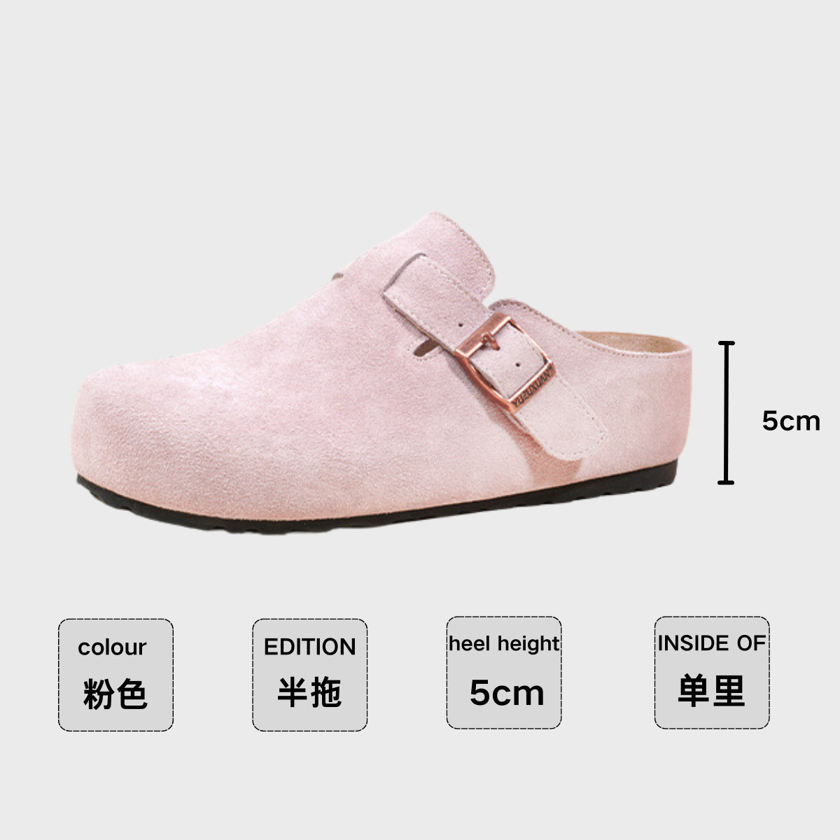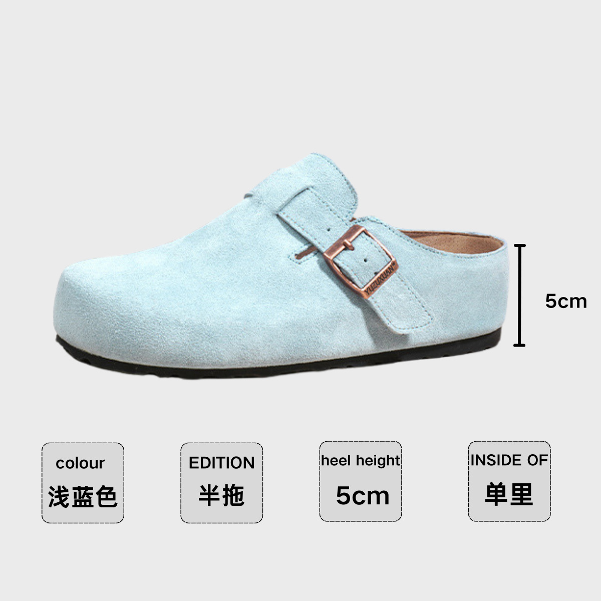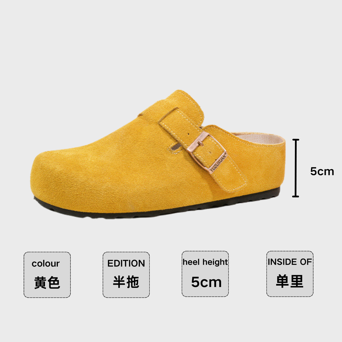 5cm 키높이 발가락 반슬리퍼 소가죽 두꺼운 밑창 내부 키높이 여성용 슬립온 슬립온 비운의 부클렌 슈즈