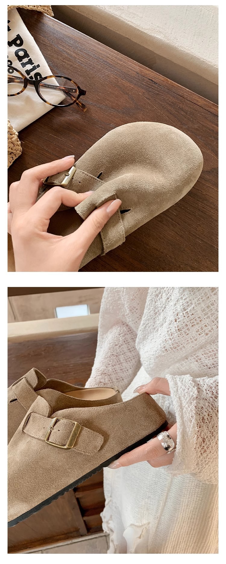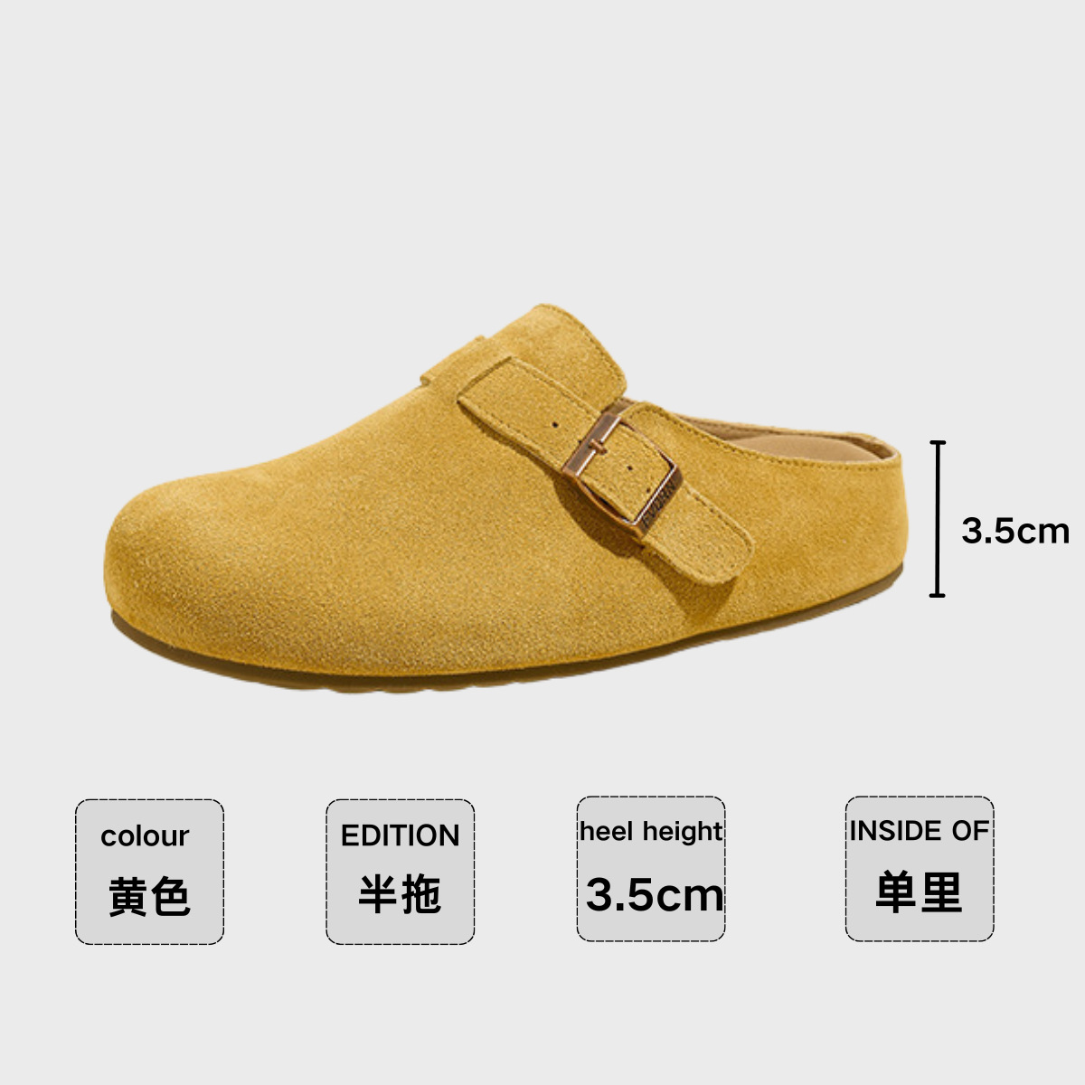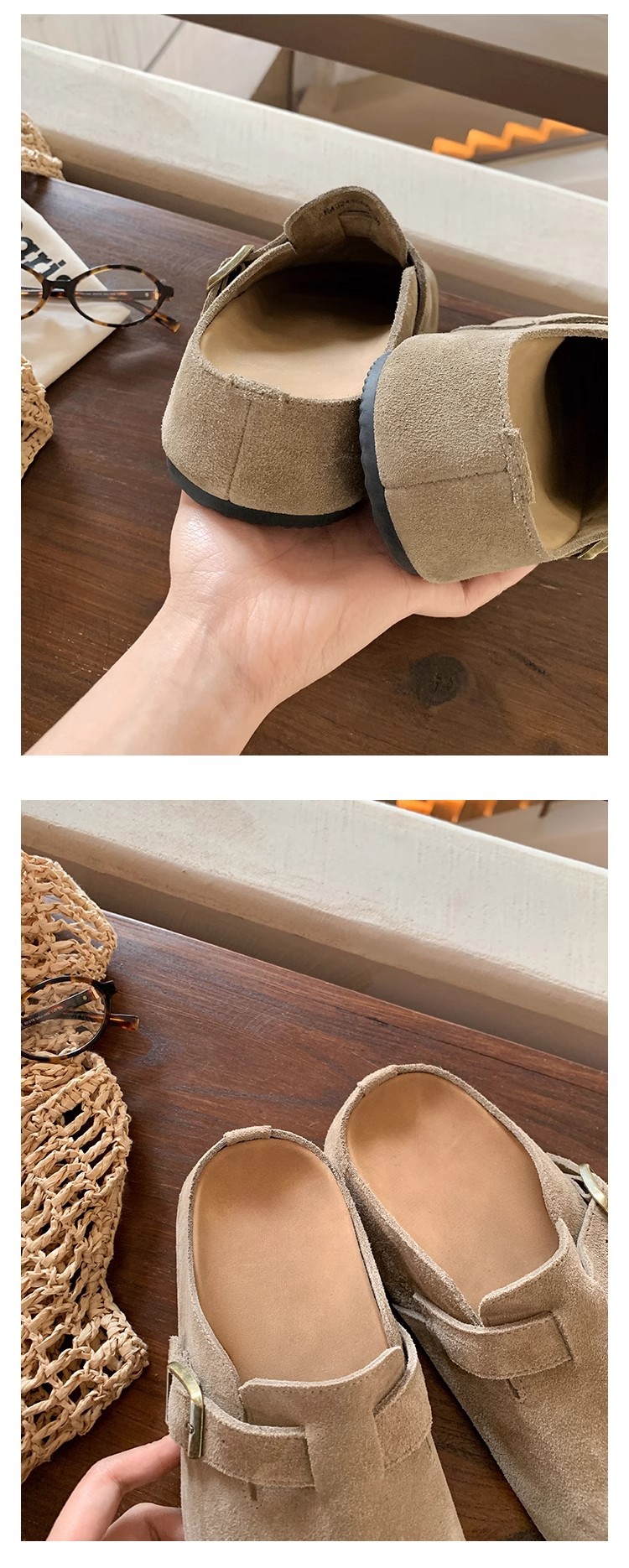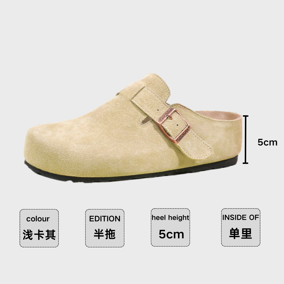 5cm 키높이 발가락 반슬리퍼 소가죽 두꺼운 밑창 내부 키높이 여성용 슬립온 슬립온 비운의 부클렌 슈즈