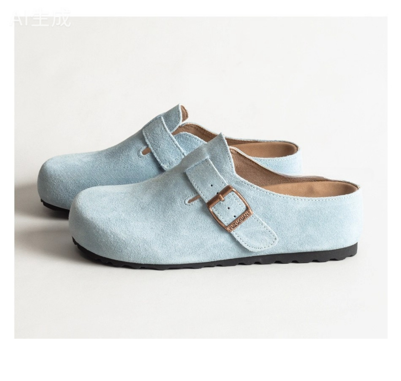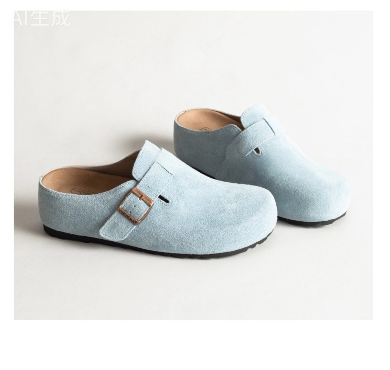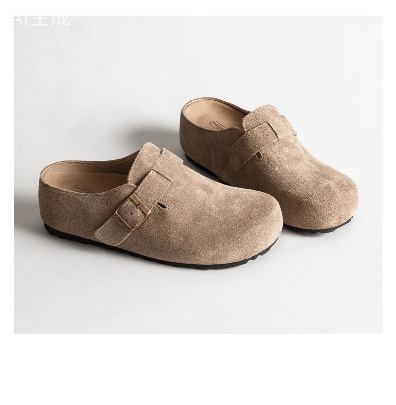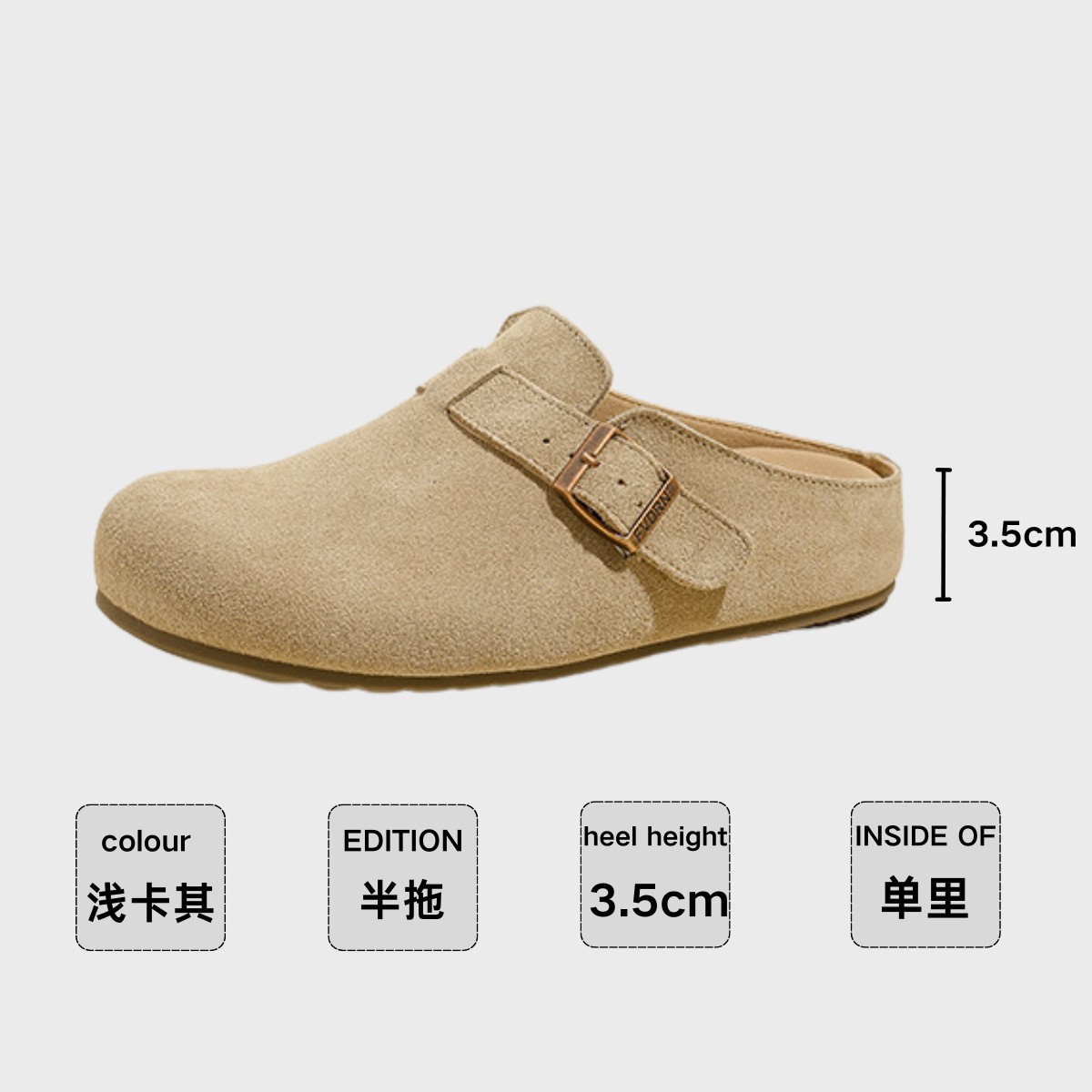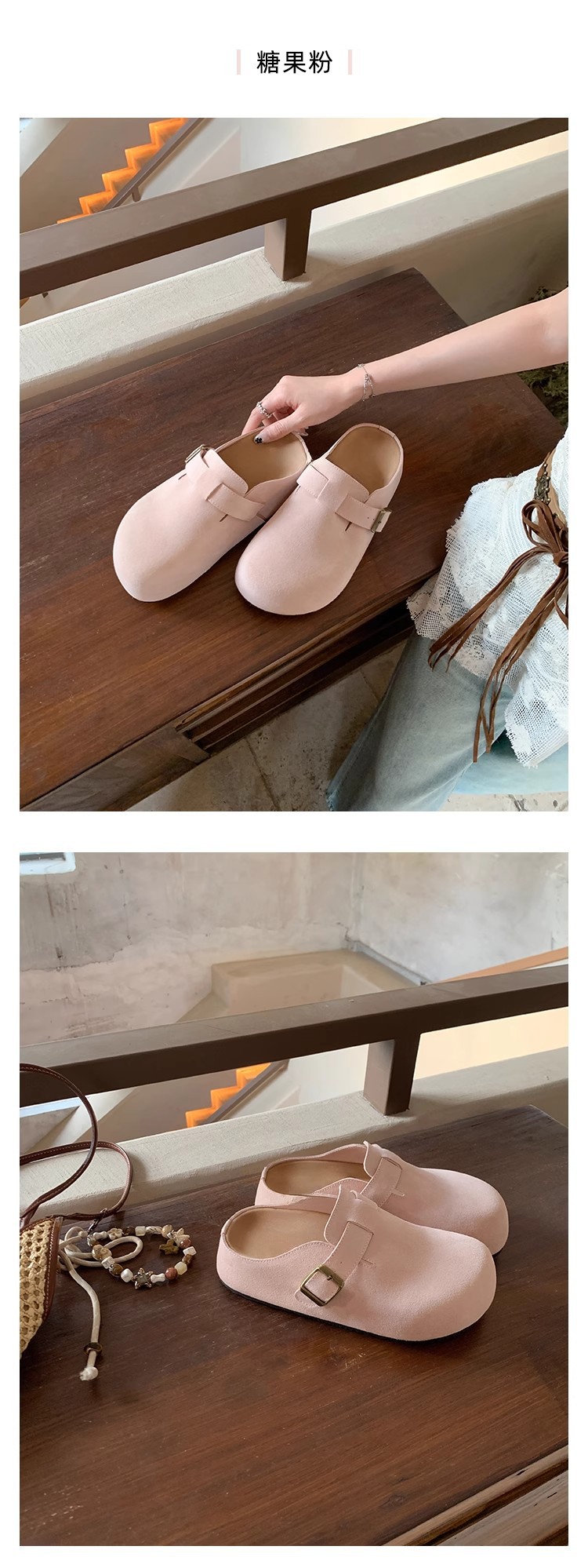 5cm 키높이 발가락 반슬리퍼 소가죽 두꺼운 밑창 내부 키높이 여성용 슬립온 슬립온 비운의 부클렌 슈즈