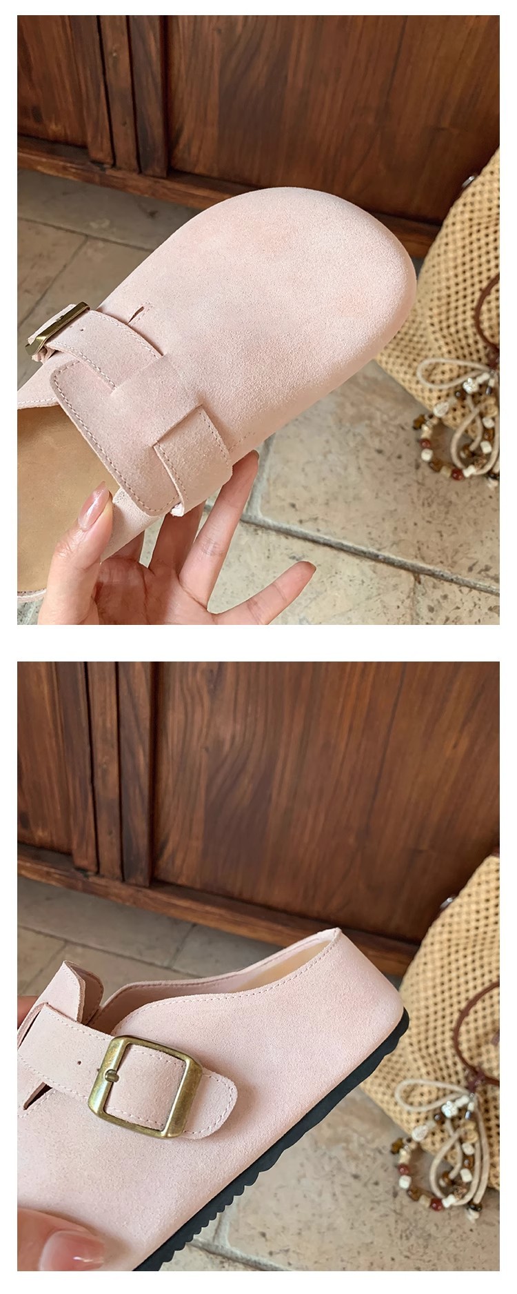 5cm 키높이 발가락 반슬리퍼 소가죽 두꺼운 밑창 내부 키높이 여성용 슬립온 슬립온 비운의 부클렌 슈즈스토어 가기