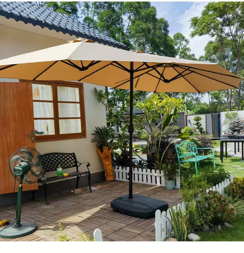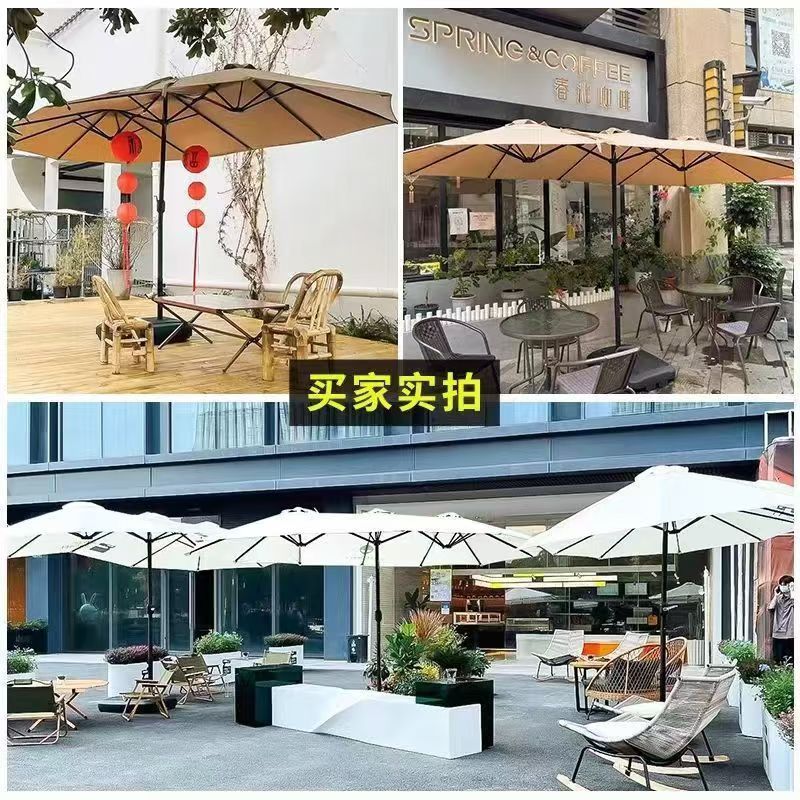 야외 차양 3 헤드 우산 정원 테라스 빌라 안뜰 우산 대형 중간 기둥 우산 태양 우산 공원 우산 발코니스토어 가기