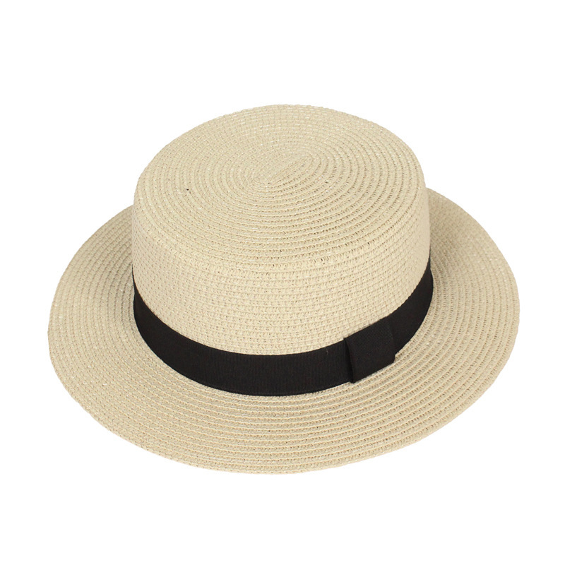 여성을위한 프랑스 복고풍 밀짚 모자 여름 2024 새로운 야외 대형 챙 태양 보호 플랫 탑 태양 모자