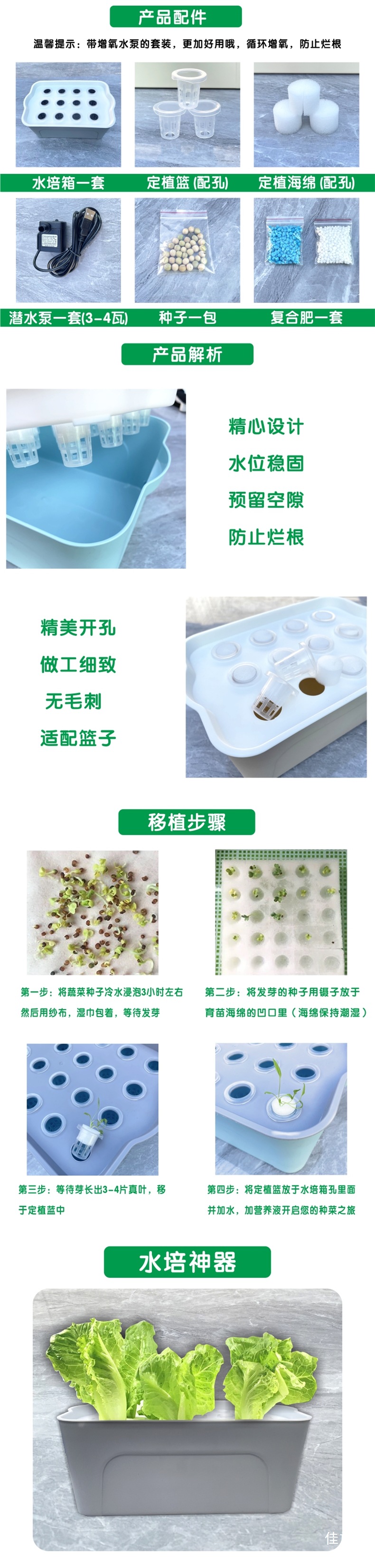 • 대형세트(수경분지+워터펌프+씨앗+비료+태양에너지+알루미늄전지)