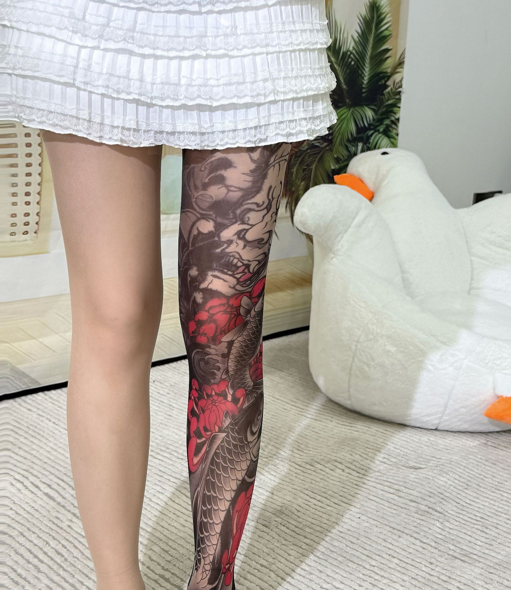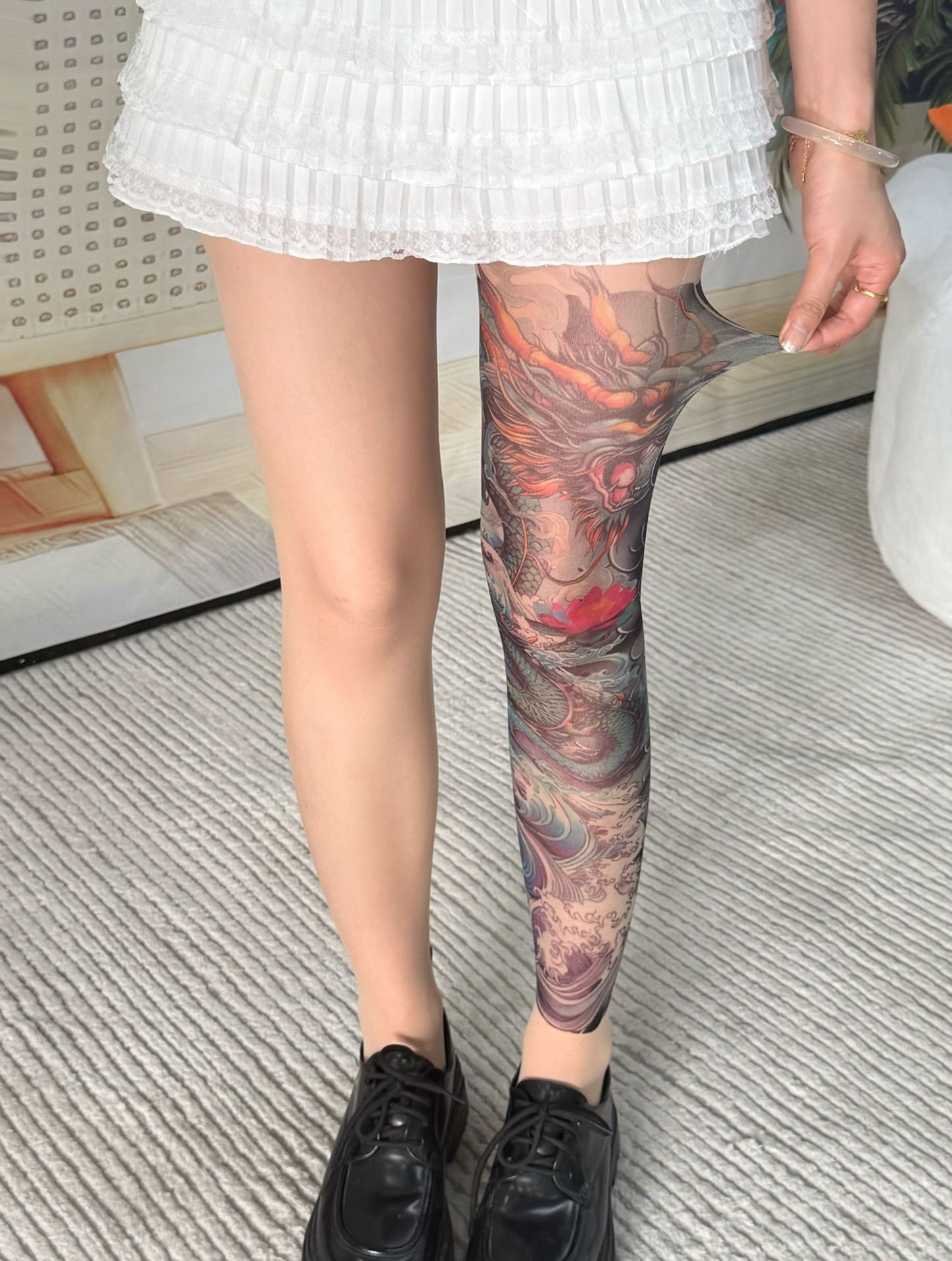 문신 스타킹 꽃무늬 레그 레깅스 여성용 얇은 안티 스트레치 니치 크리에이티브 레그리스 아티팩트 섹시한 핫걸 팬티 스타킹스토어 가기