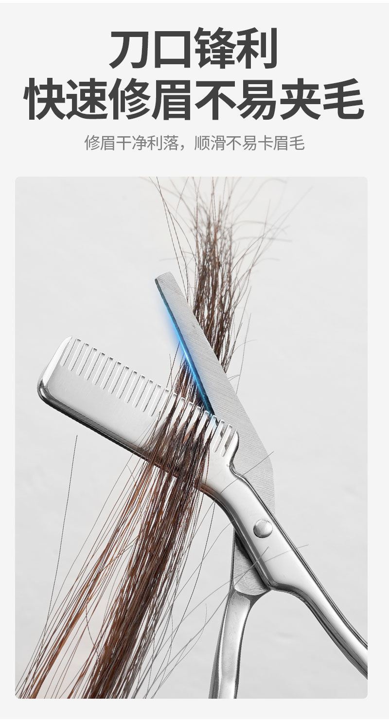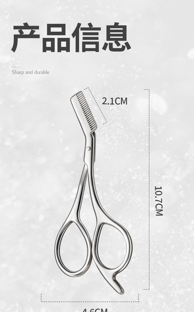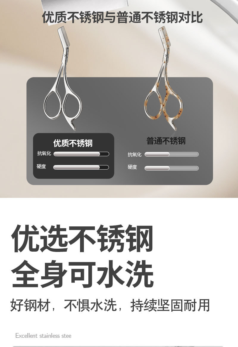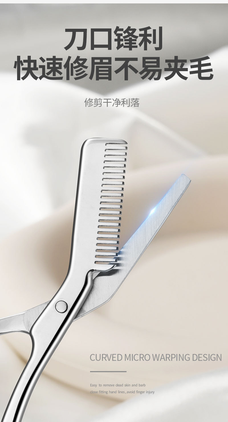 공장 직판 스테인리스 눈썹 가위, 미끄럼 방지 미용 가위, 긁힘 방지 눈썹 정리 칼, 빗과 가위 겸용 미용 가위