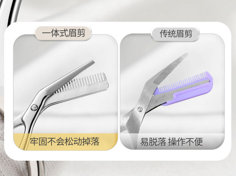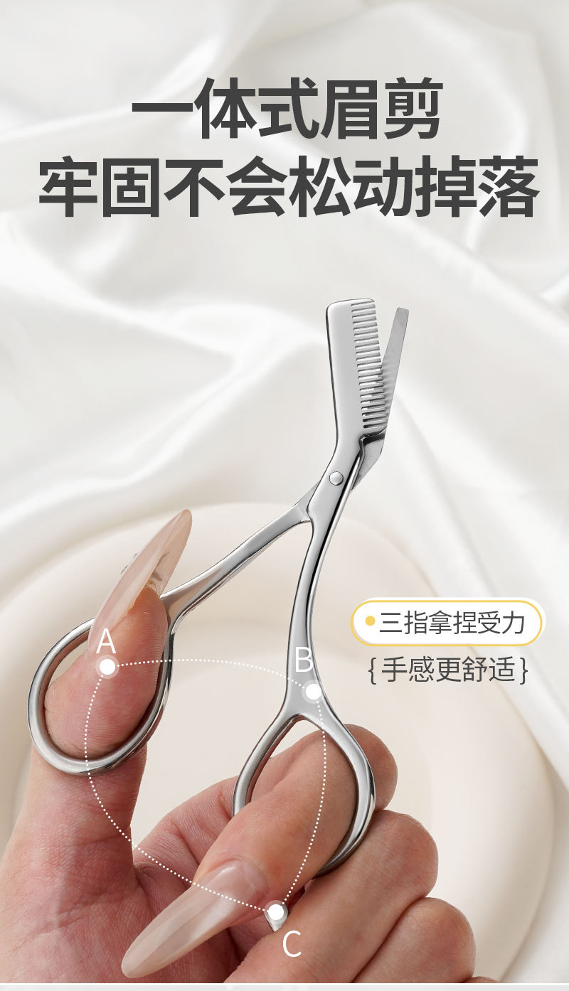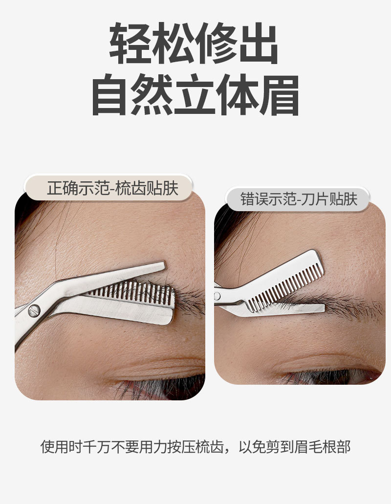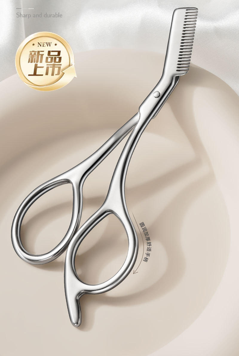 공장 직판 스테인리스 눈썹 가위, 미끄럼 방지 미용 가위, 긁힘 방지 눈썹 정리 칼, 빗과 가위 겸용 미용 가위