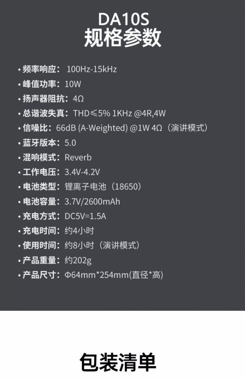 • DA10S에는 스탠드가 포함되어 있습니다. [10W 고음량, 블루투스, 리버브]