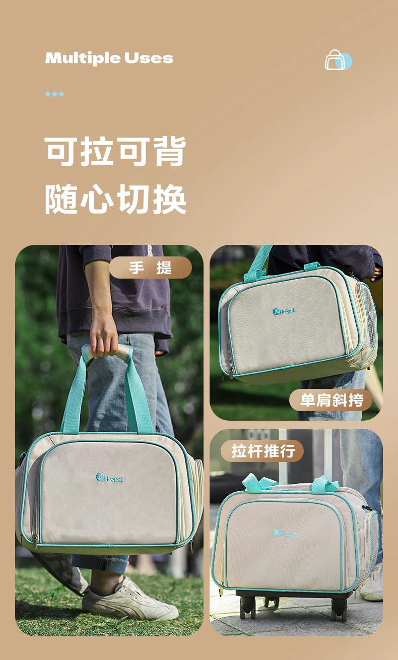 고양이 가방, 휴대용 고양이 배낭, 소형견 및 강아지 대용량 휴대용 크로스바디 안티 스트레스 애완동물 트롤리 케이스