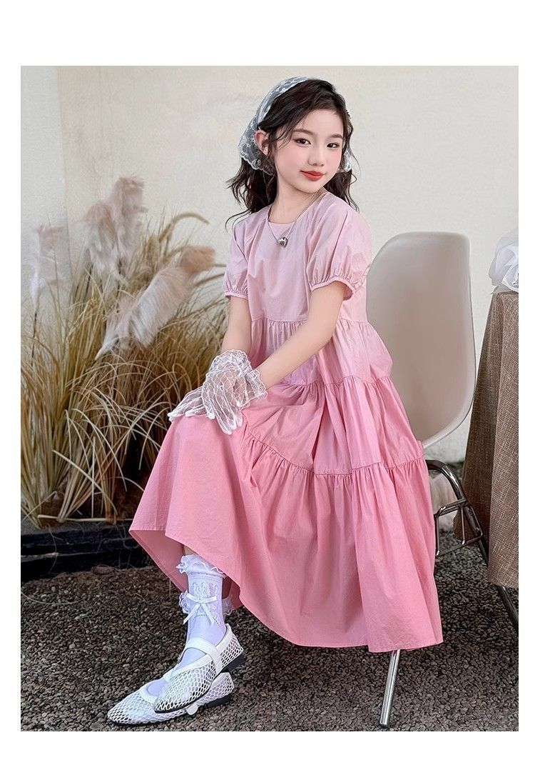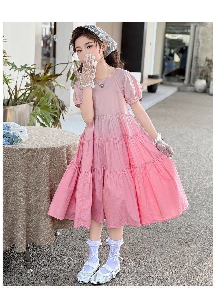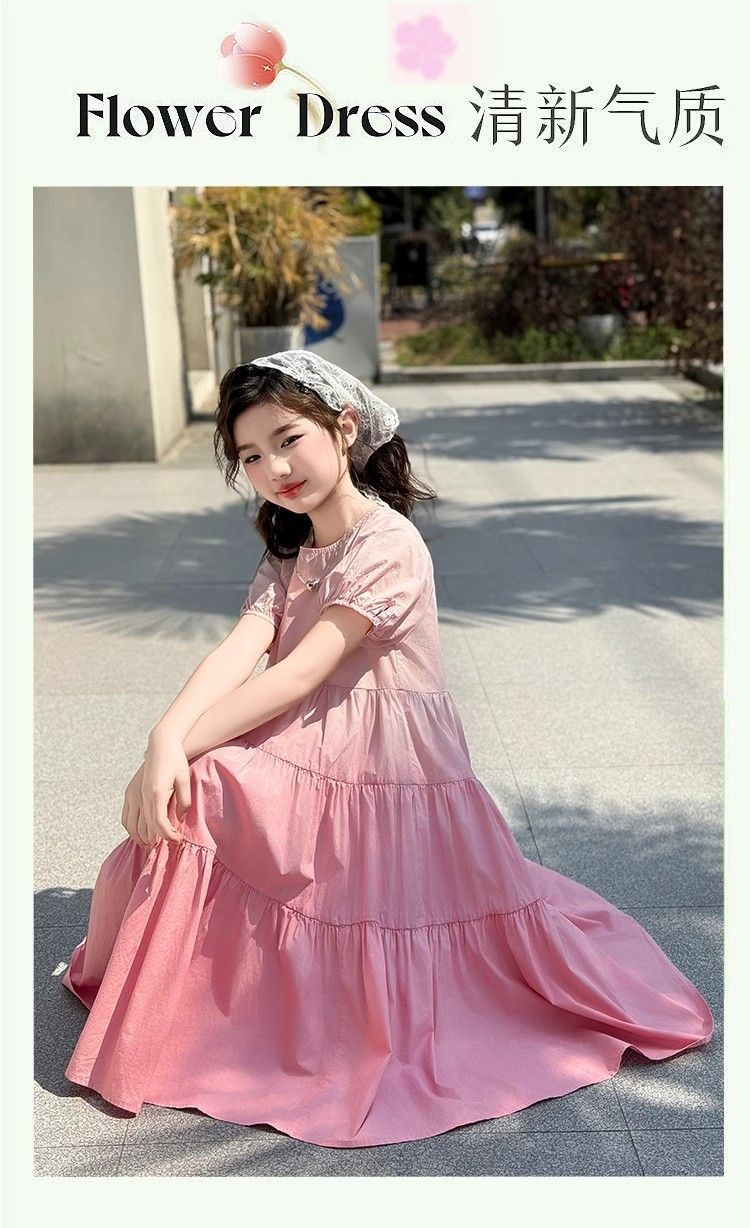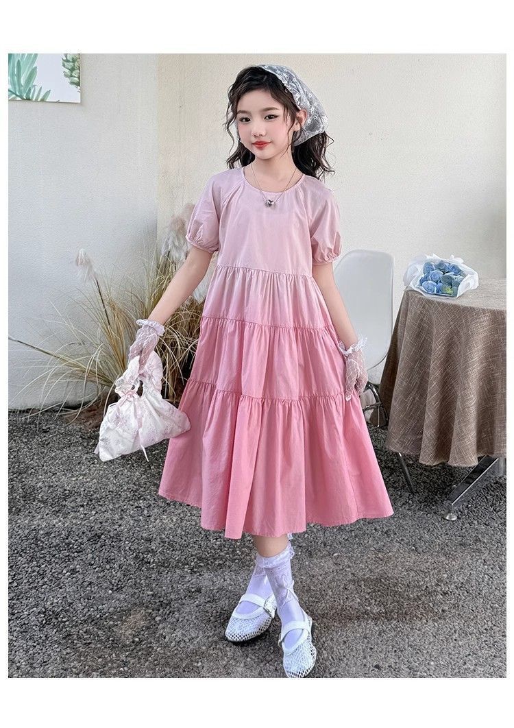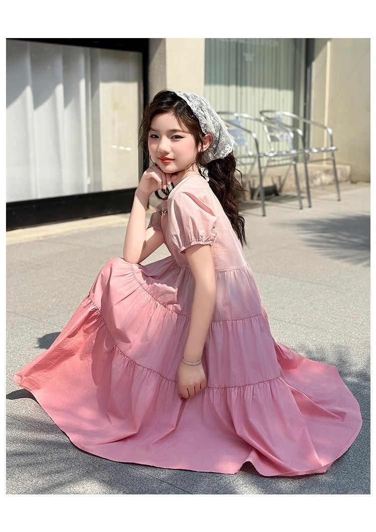 여자 여름 드레스 2025 새로운 스타일 중대형 어린이 한국 패션 공주 드레스 인터넷 연예인 그라데이션 비치 드레스스토어 가기