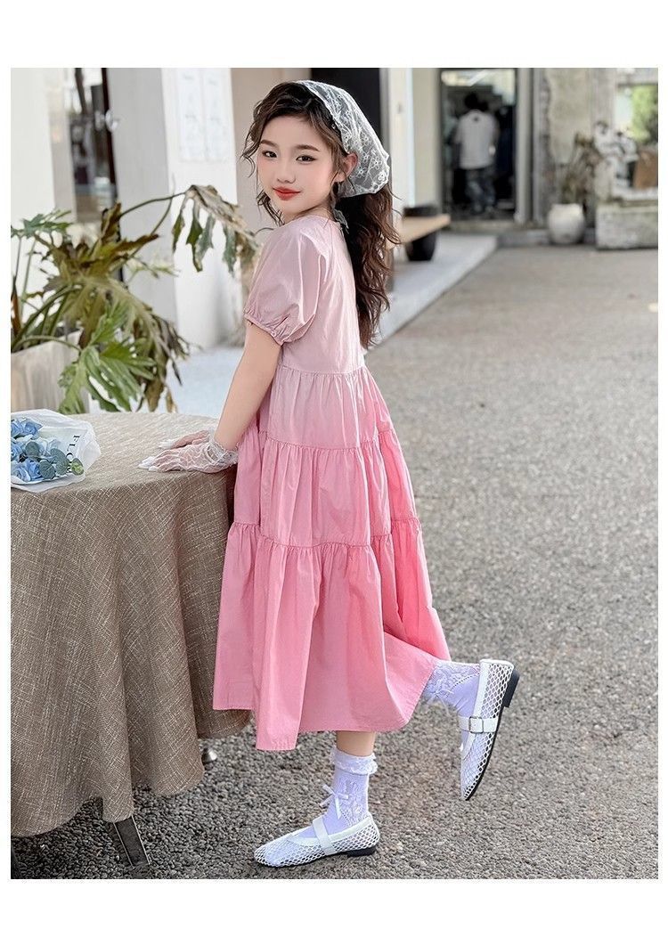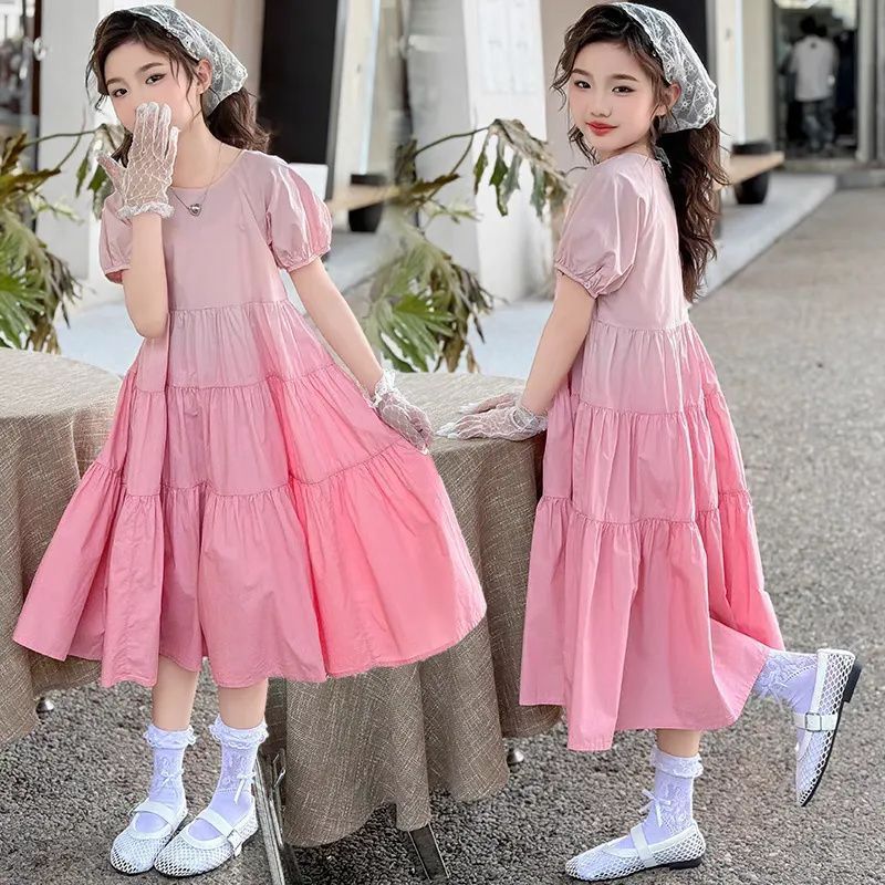 여자 여름 드레스 2025 새로운 스타일 중대형 어린이 한국 패션 공주 드레스 인터넷 연예인 그라데이션 비치 드레스