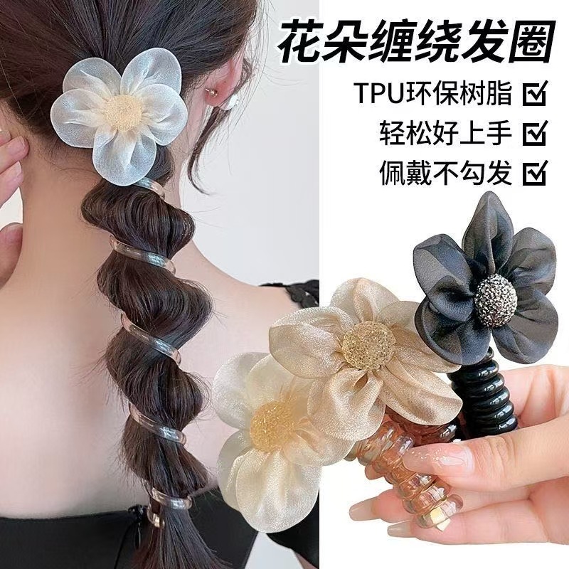 가벼운 고급 거즈 해바라기 헤어 링 포니 테일 볼 헤드 고무 텐던 헤드 로프 높은 탄성 헤어 로프 헤어 타이 헤드웨어