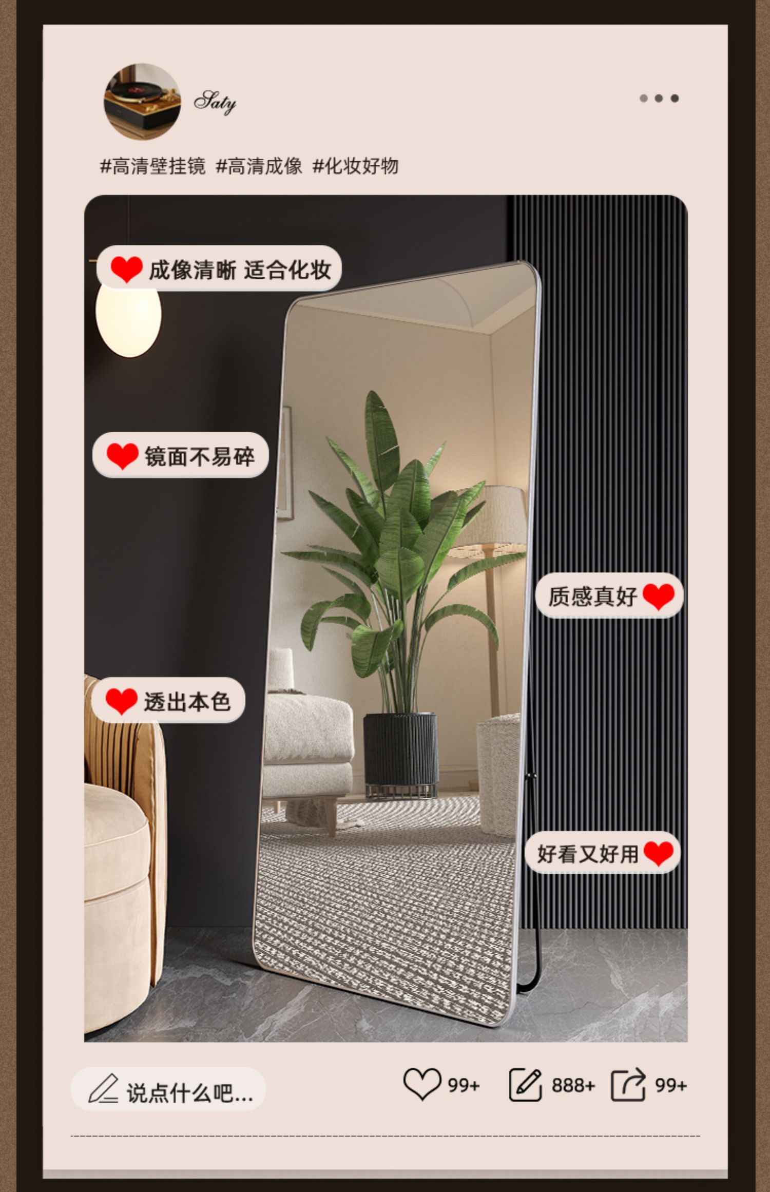 전체 길이 거울 드레싱 바닥 거울 가정용 벽 장착 벽 장착 인터넷 유명 소녀 침실 메이크업 벽 장착 3 차원 피팅 미러