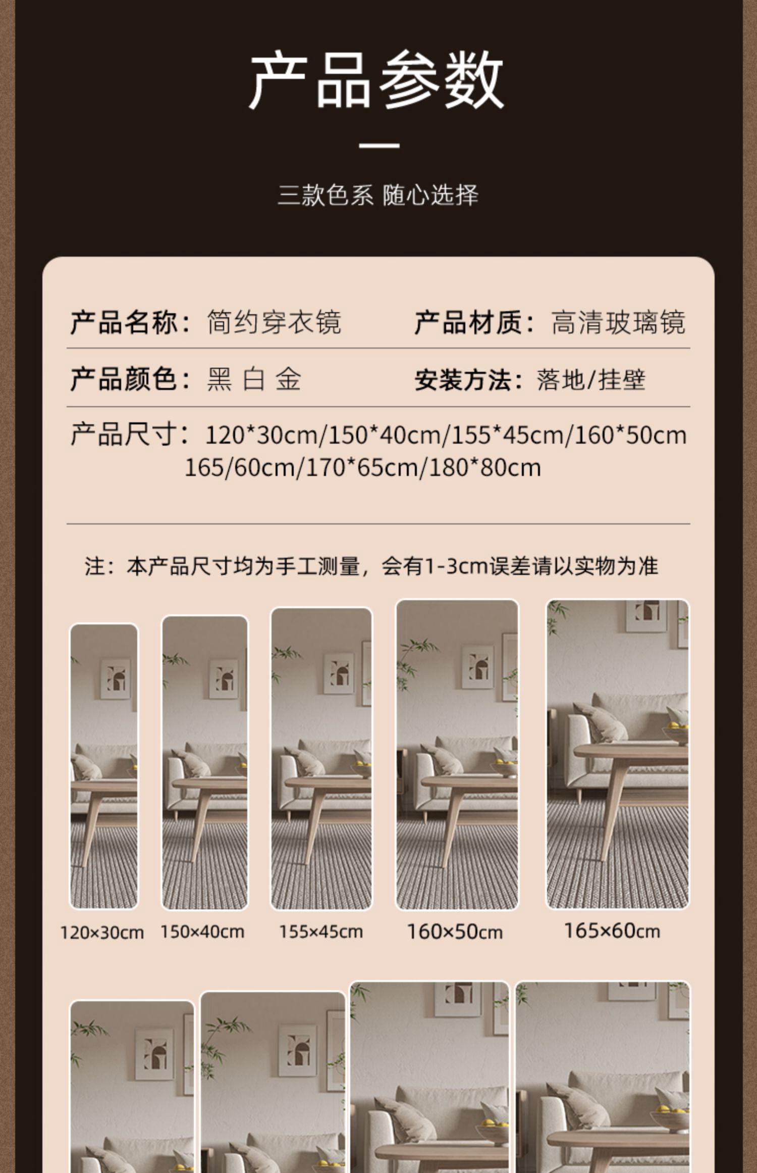 • 라이트 럭셔리 골드-60*165cm [바닥걸이, 벽걸이]