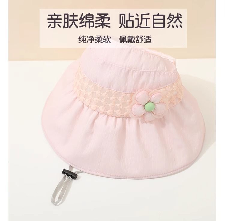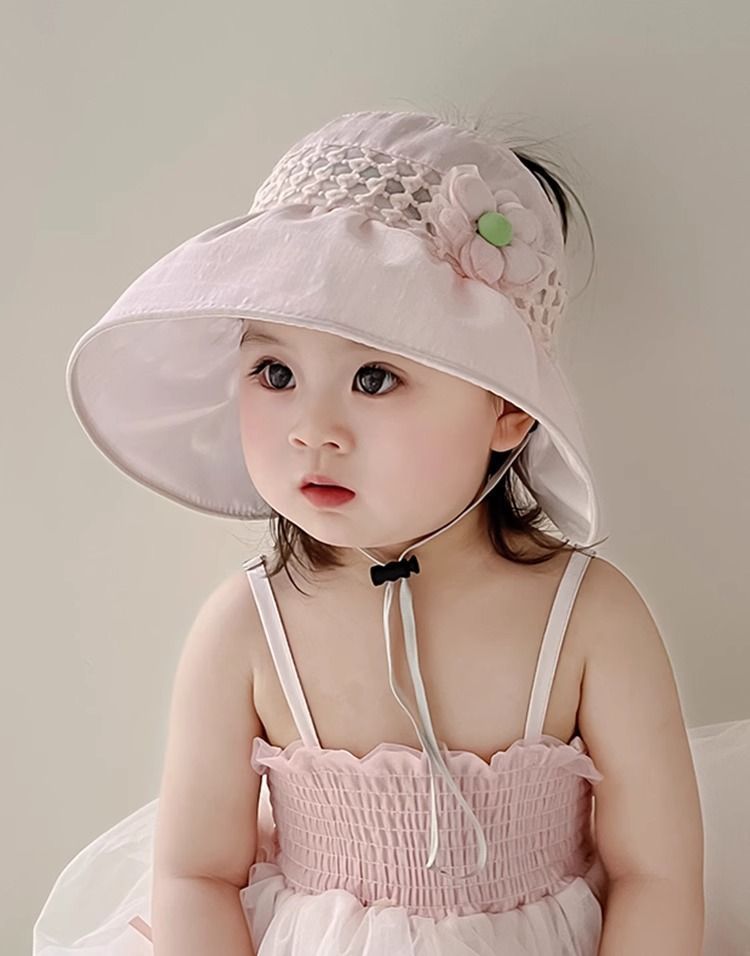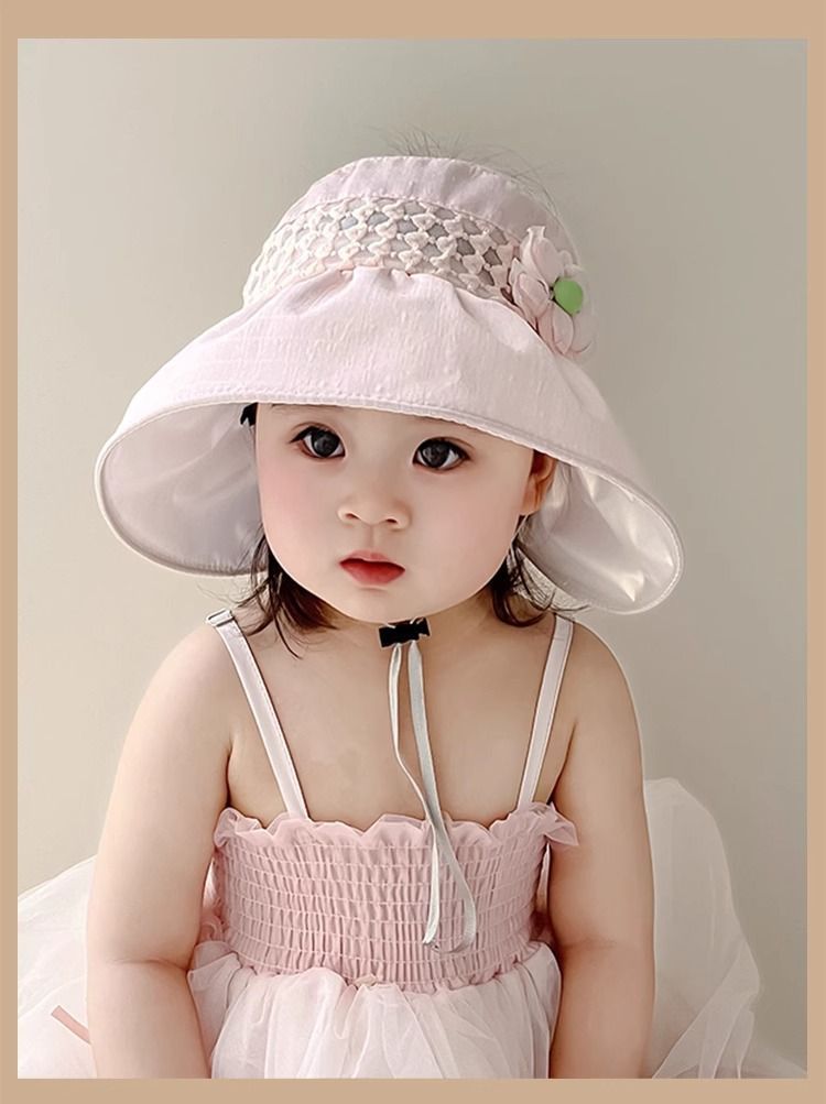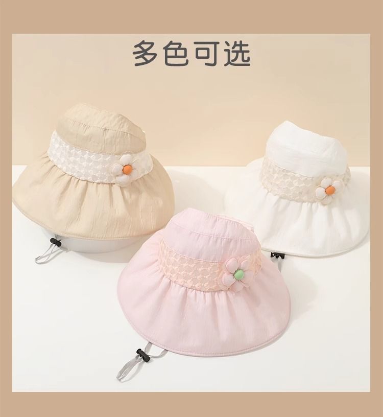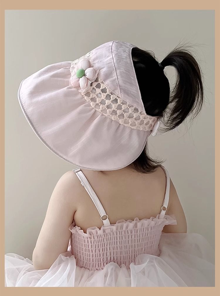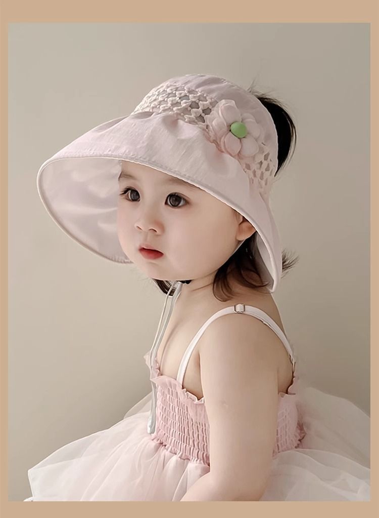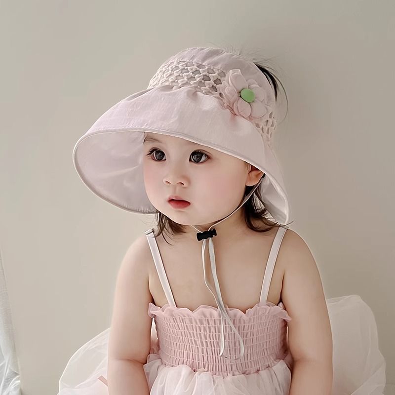 [통기성 자외선 차단제] 어린이 모자 여름 얇은 대형 챙 차양 자외선 방지 빈 모자 한국식 꽃