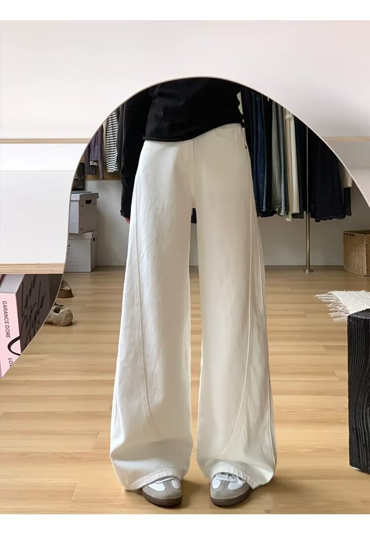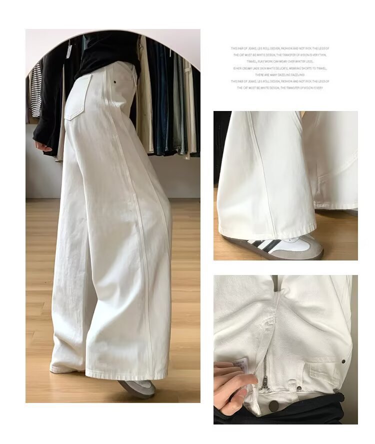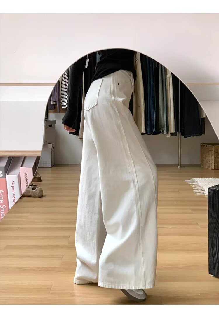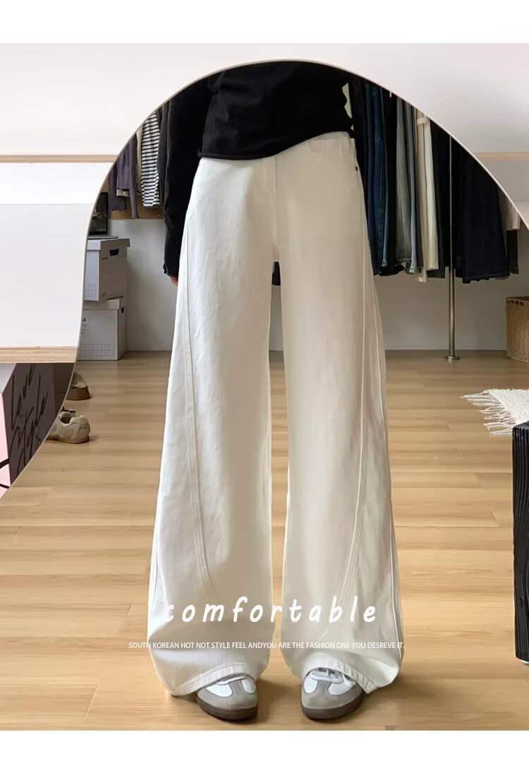 여성을위한 대형 하이 엔드 화이트 심플 하이 웨이스트 와이드 레그 청바지 봄 새로운 느슨한 지방 mm 드레이프 칼바늘 바지스토어 가기