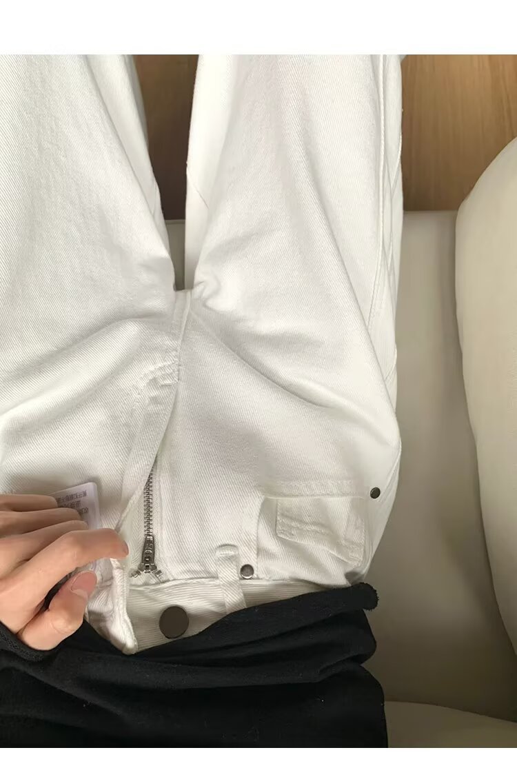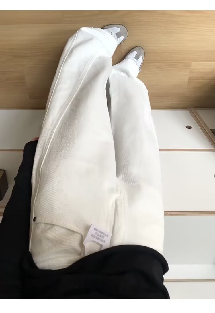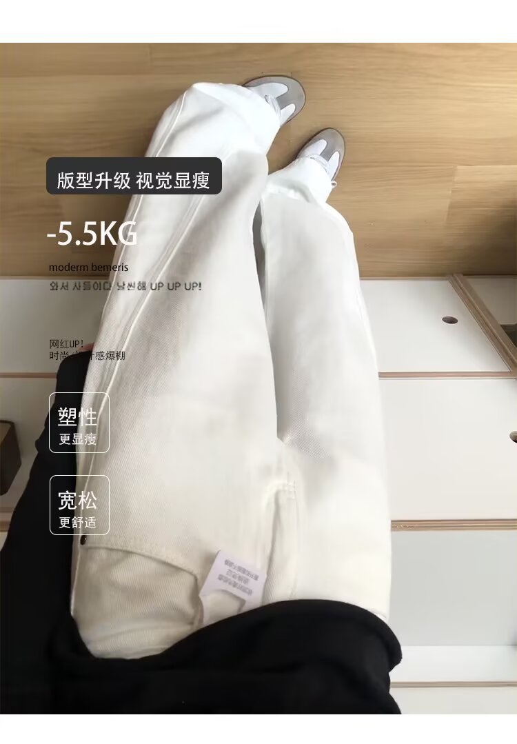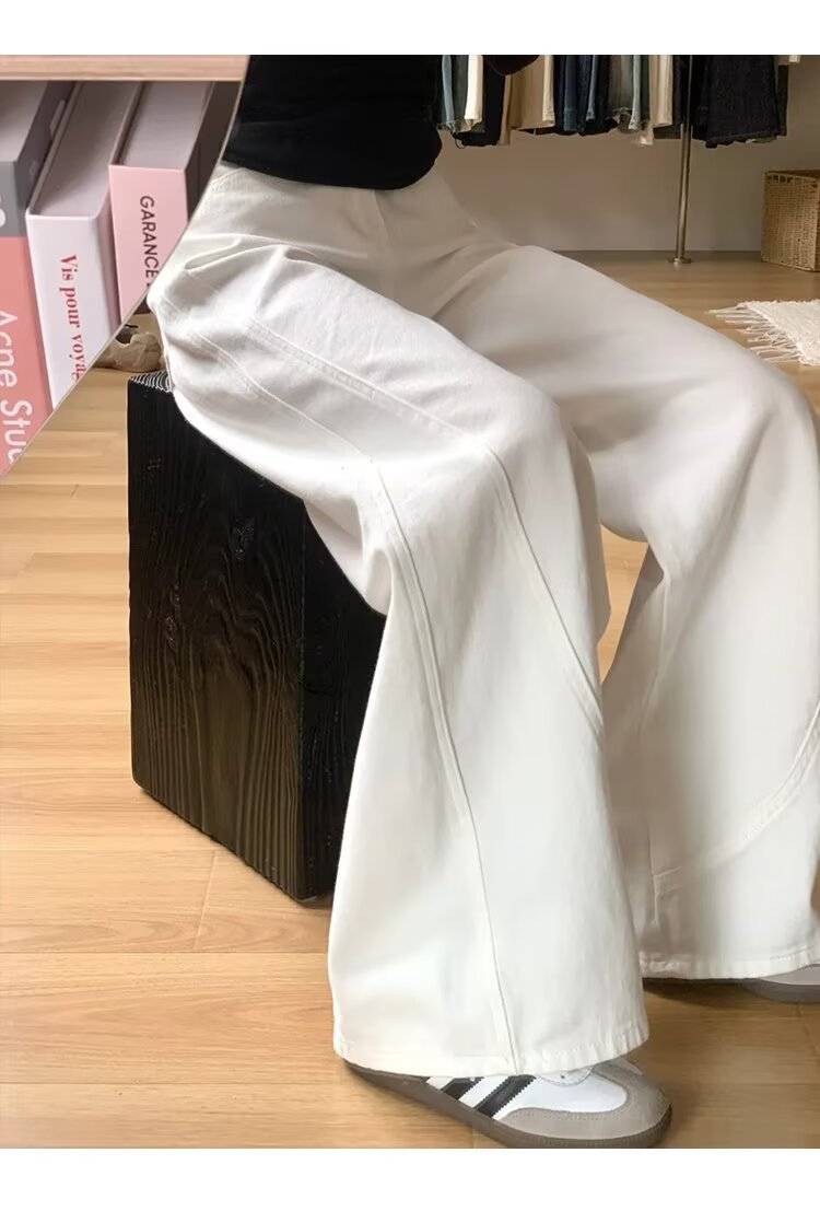 여성을위한 대형 하이 엔드 화이트 심플 하이 웨이스트 와이드 레그 청바지 봄 새로운 느슨한 지방 mm 드레이프 칼바늘 바지스토어 가기