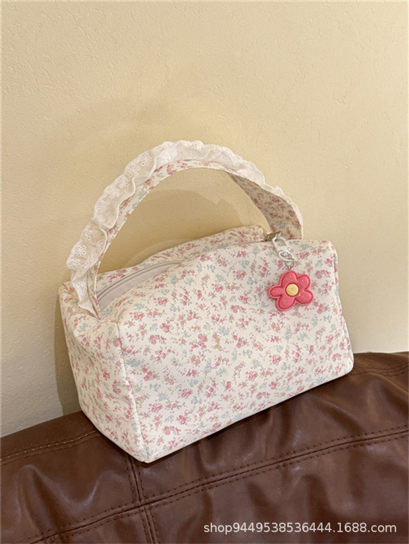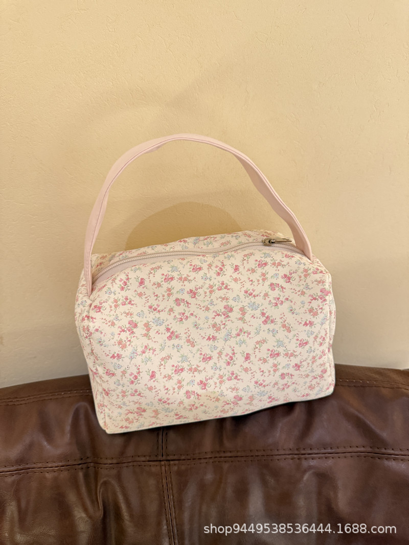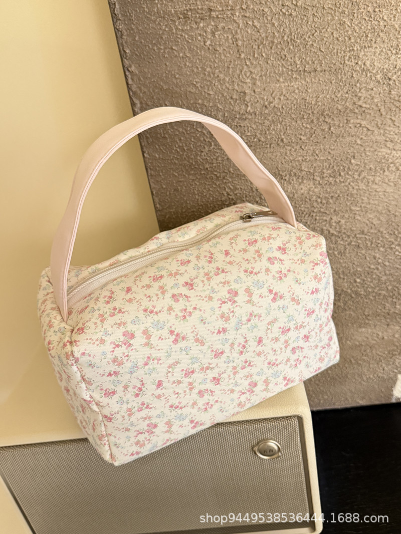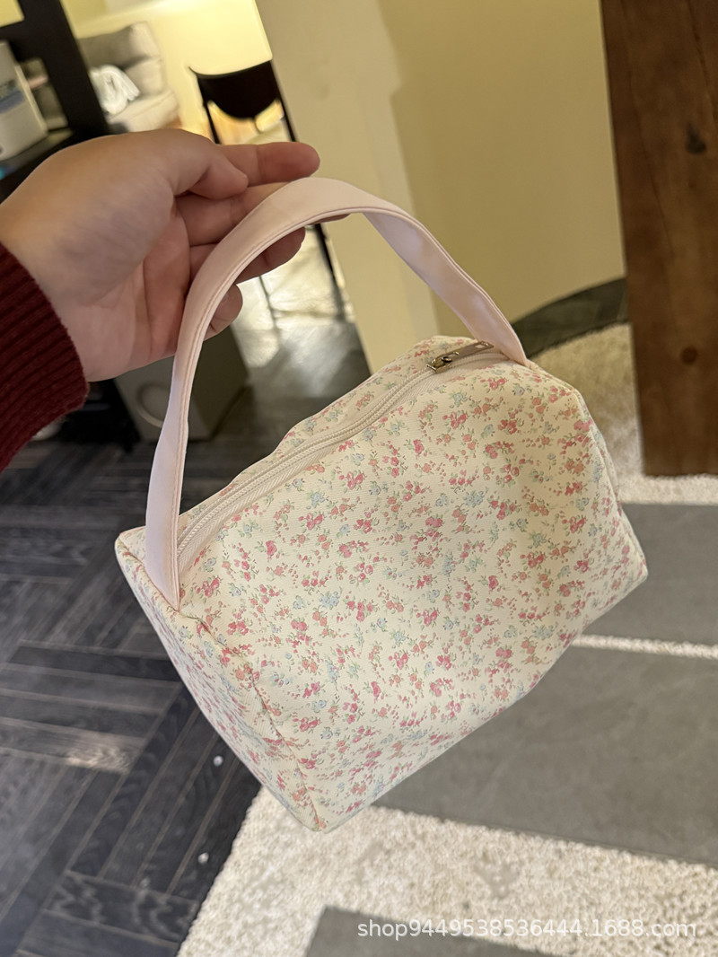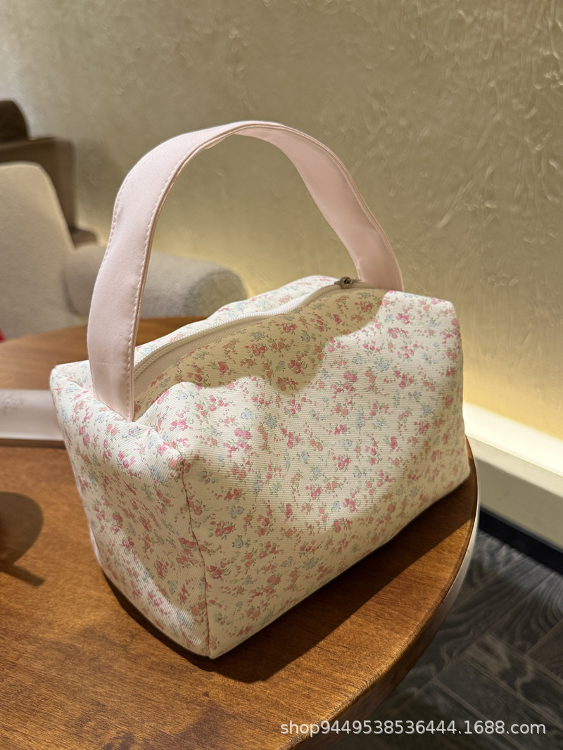 봄과 여름 새로운 작은 꽃 핸드백 높은 가치의 대용량 메이크업 세척 가방 여행 입체 저장 가방