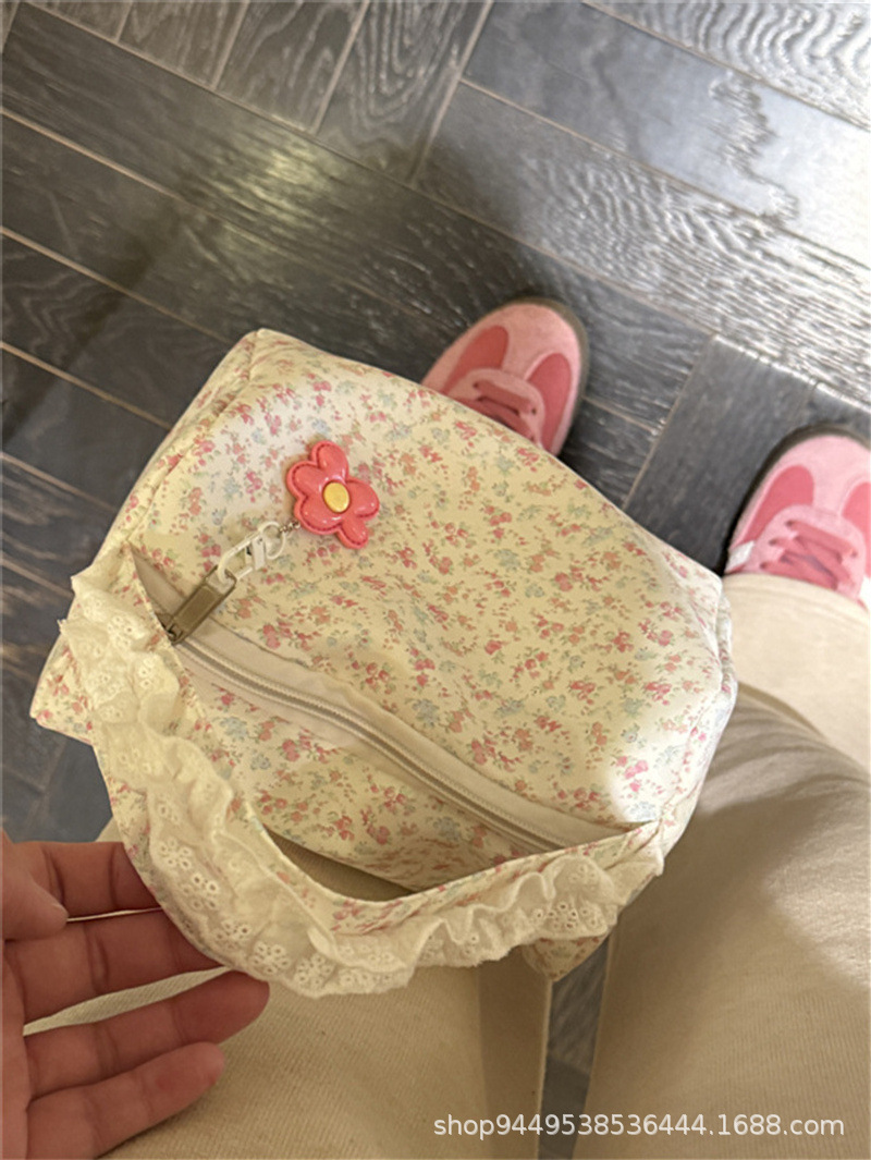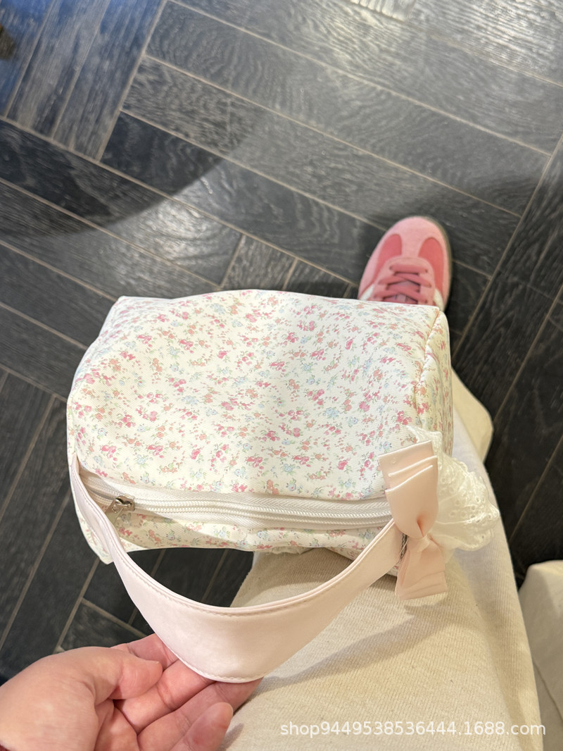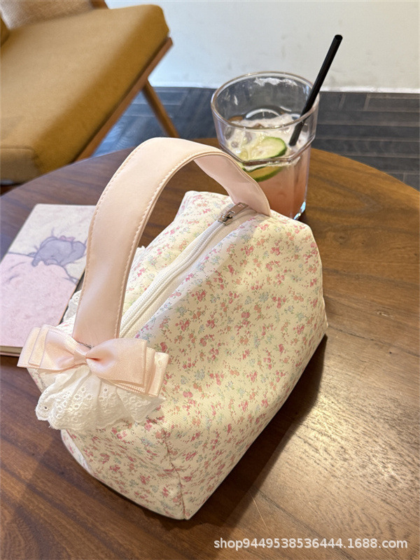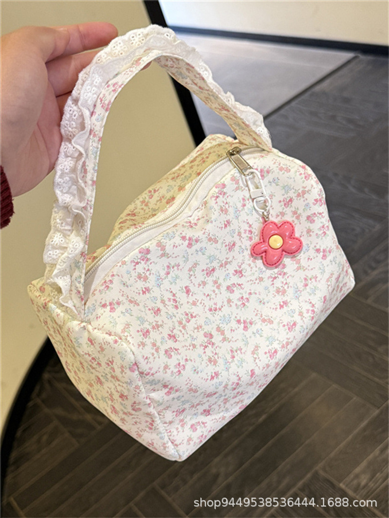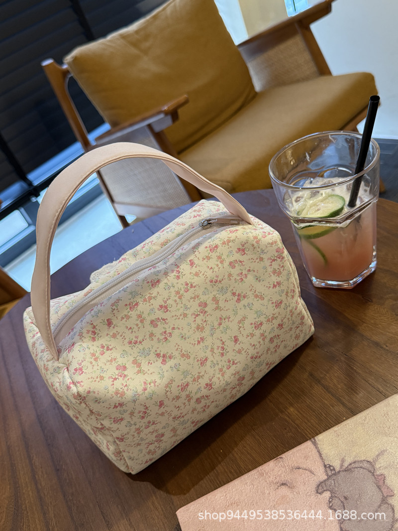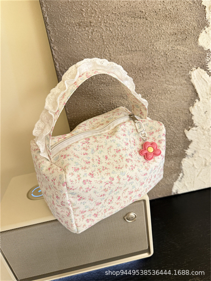 봄과 여름 새로운 작은 꽃 핸드백 높은 가치의 대용량 메이크업 세척 가방 여행 입체 저장 가방