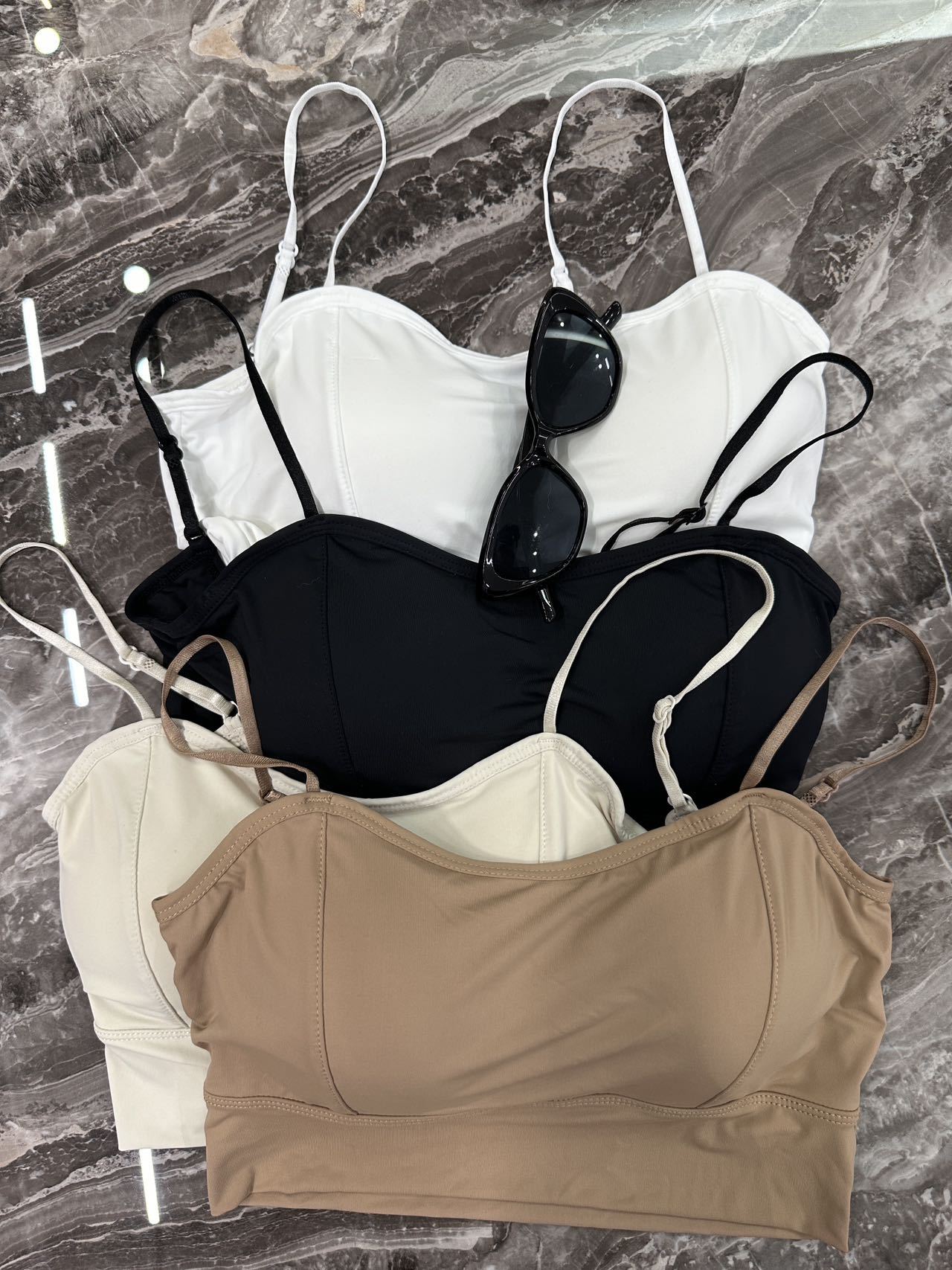 두꺼운 가슴 패드, 고정 라텍스 컵, 빅 U 뷰티 백, 가슴 푸쉬업, 아우터웨어, 아이스 실크 스파게티 스트랩 캐미솔스토어 가기