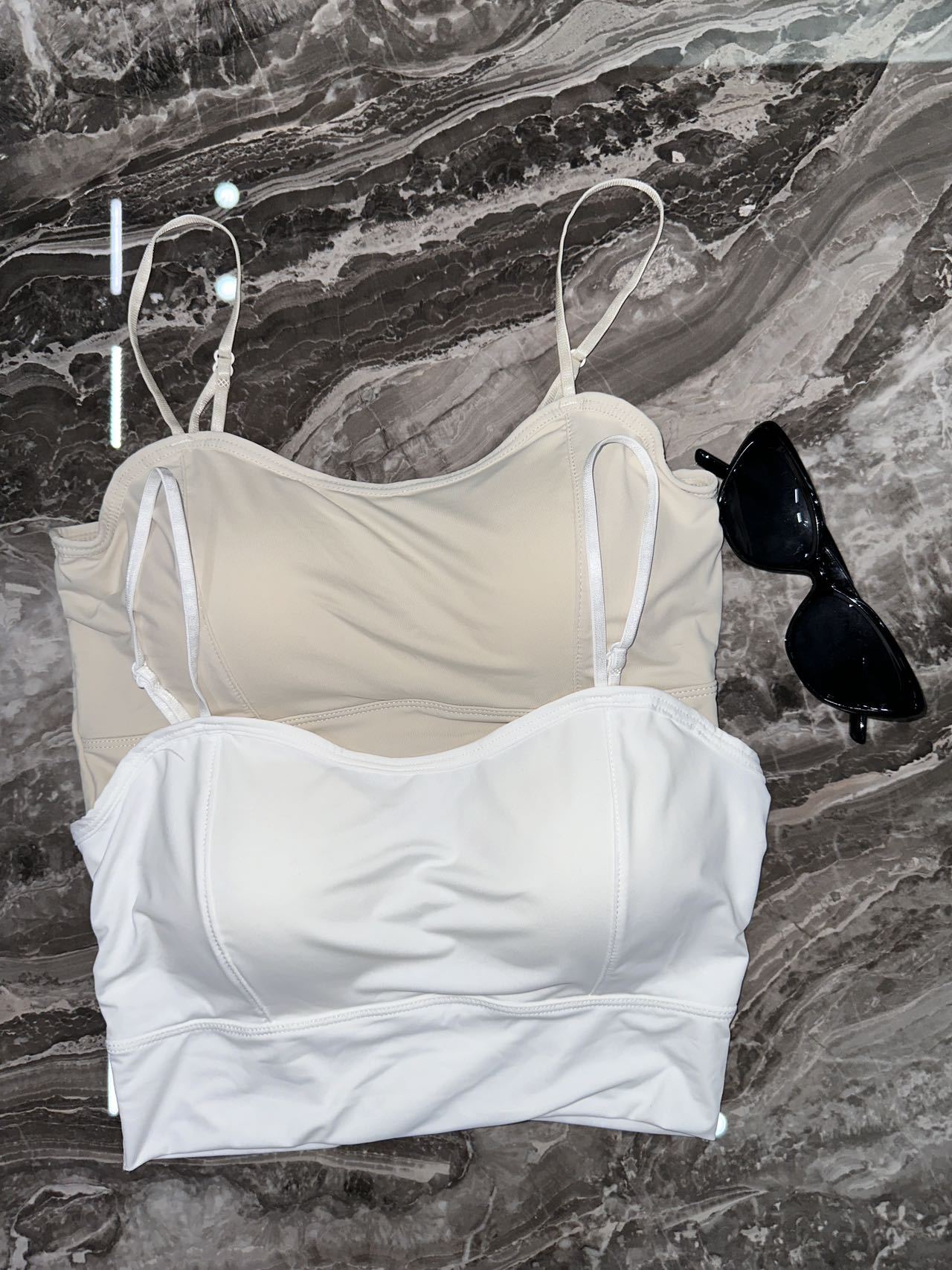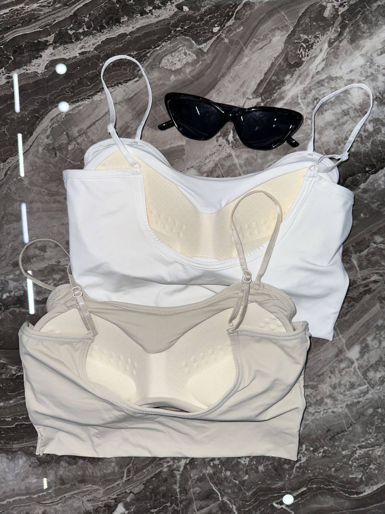 두꺼운 가슴 패드, 고정 라텍스 컵, 빅 U 뷰티 백, 가슴 푸쉬업, 아우터웨어, 아이스 실크 스파게티 스트랩 캐미솔