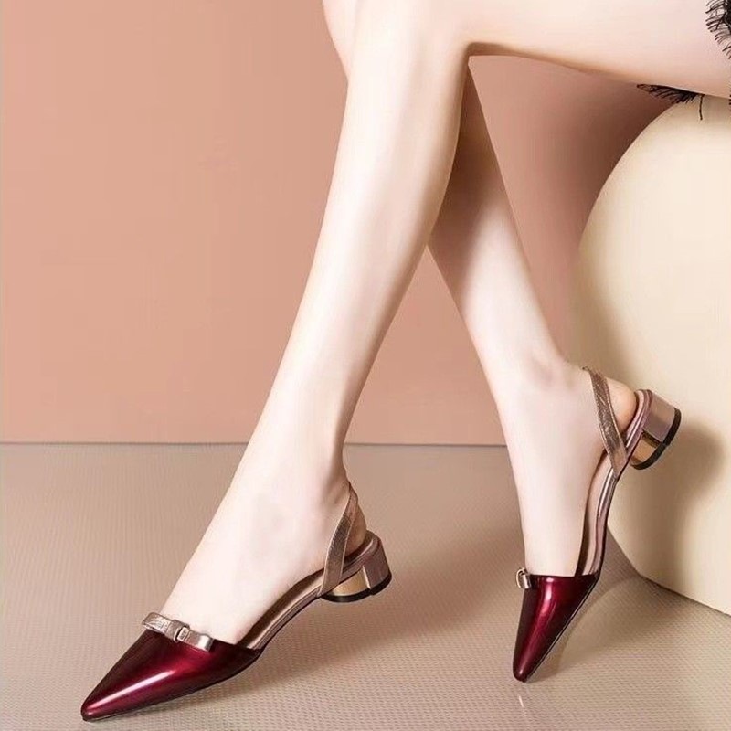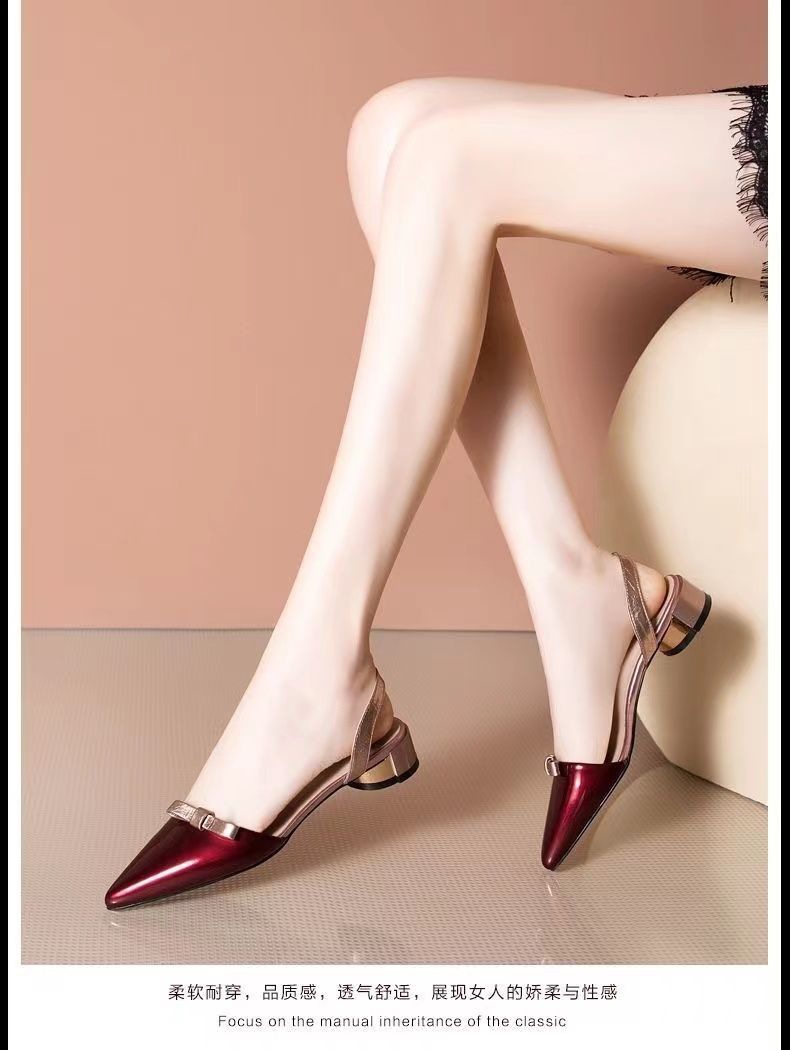 여름 여성용 다용도 새 샌들, 뾰족한 굽 샌들, 부드러운 가죽 발가락 커버, 패셔너블한 미드 힐, 백 하이힐스토어 가기