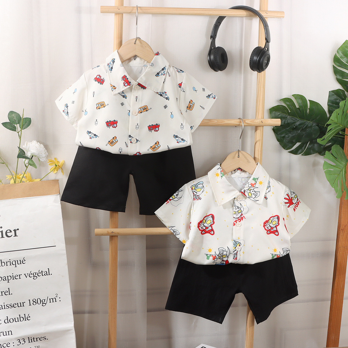 만화 애니메이션 한국어 버전 남성 캐주얼 스타일 아동 의류 여름 만화 셔츠 탑 반바지 정장 얇은 느슨한