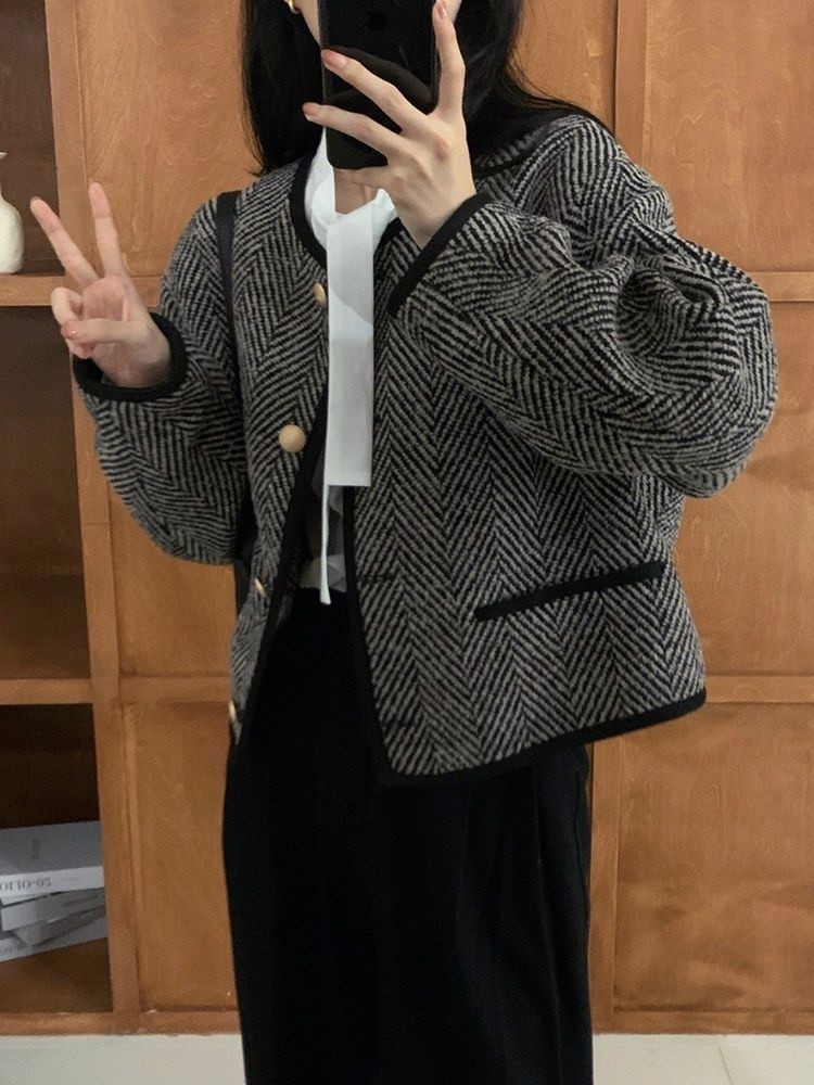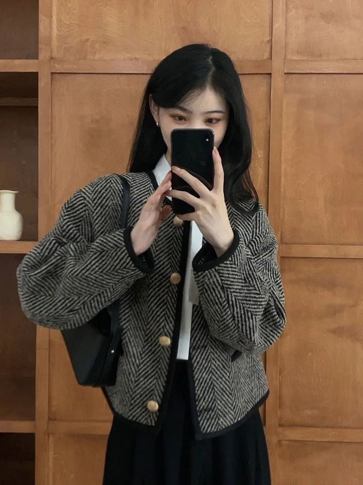 여성을 위한 프렌치 레트로 스타일 트위드 재킷, 콜드 스타일, 고급 짧은 모직 재킷, 가디건 탑, 봄, 가을
